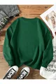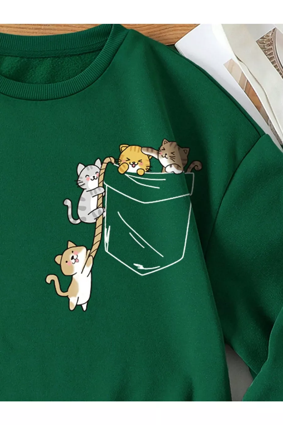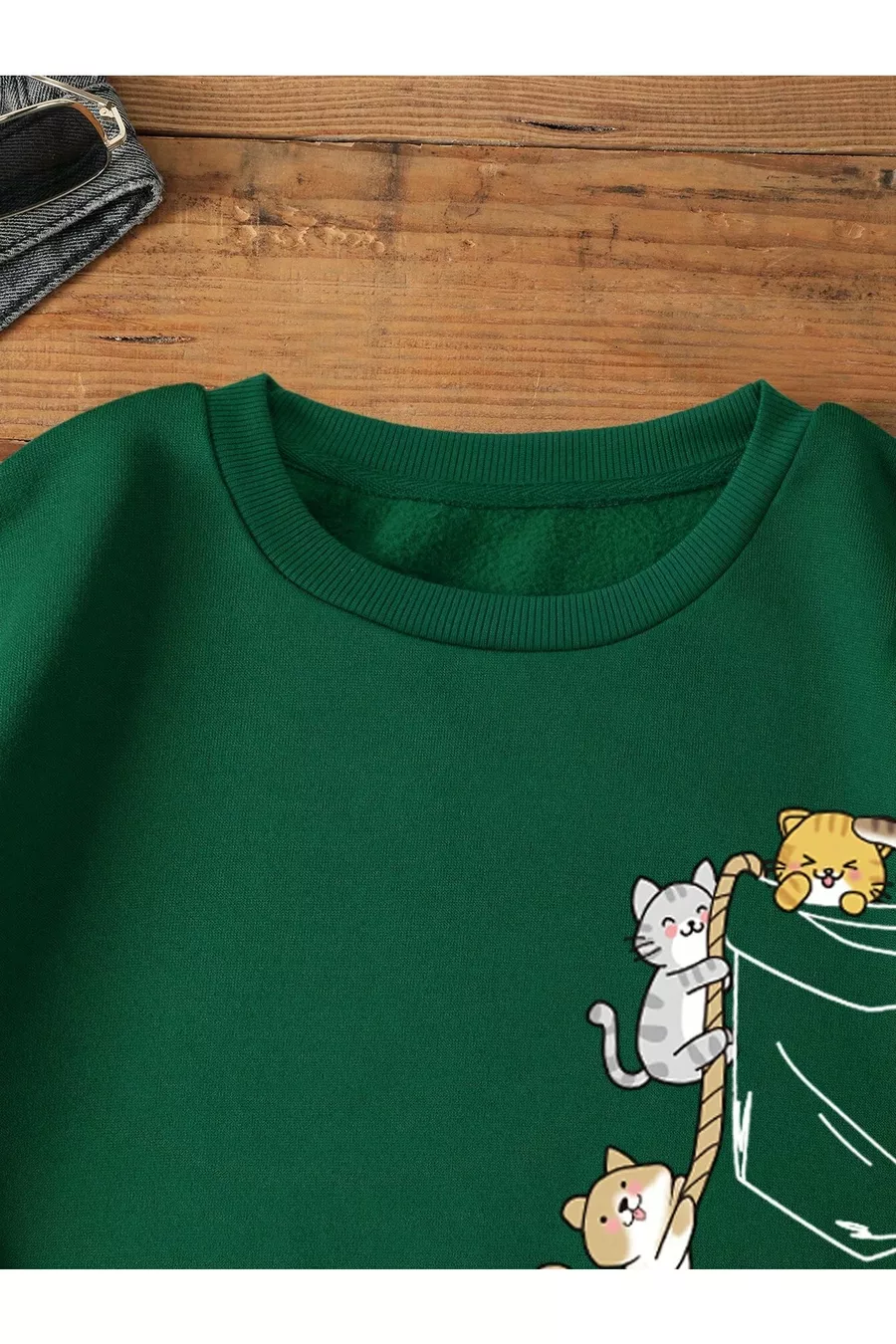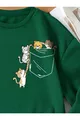 Sweatshirt oversize à col rond pour femme, imprimé poitrine Cat vert