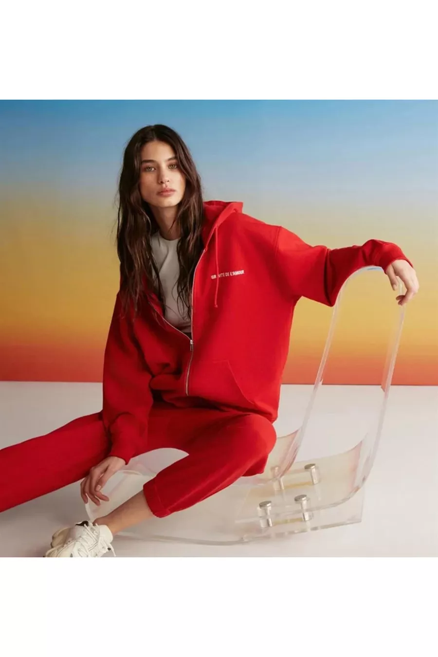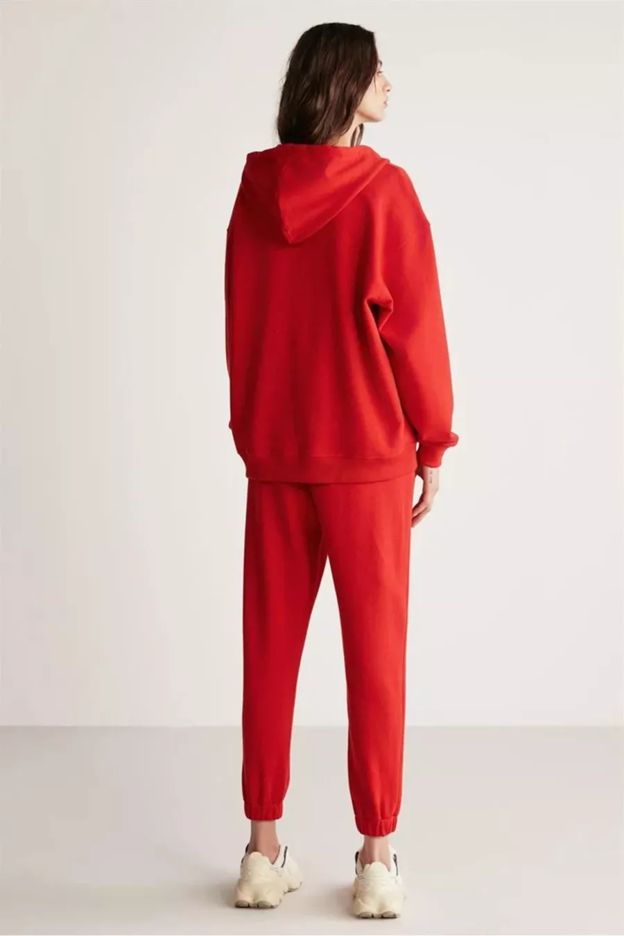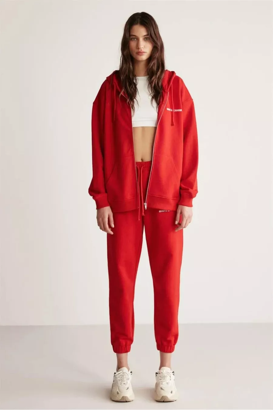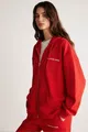 Sweatshirt rouge à capuche pour femme Ametıs en coton biologique oversize avec fermeture éclair métallique