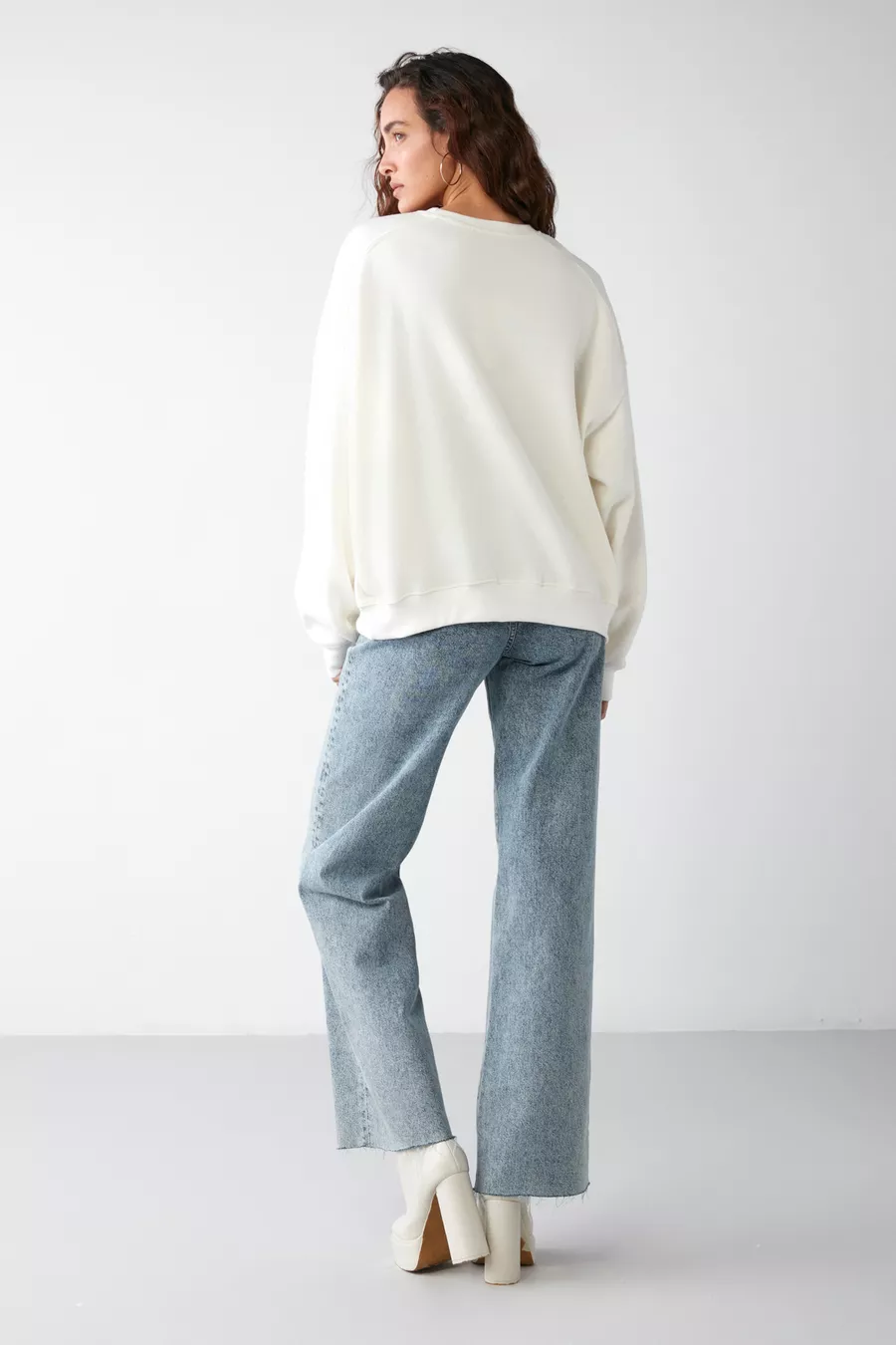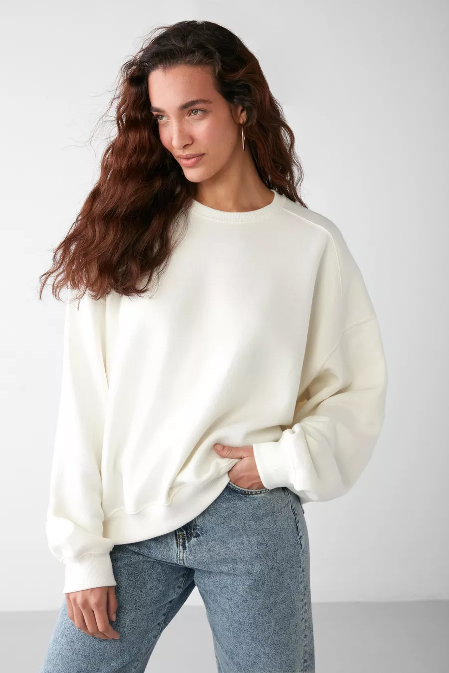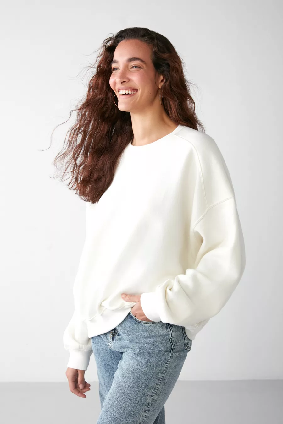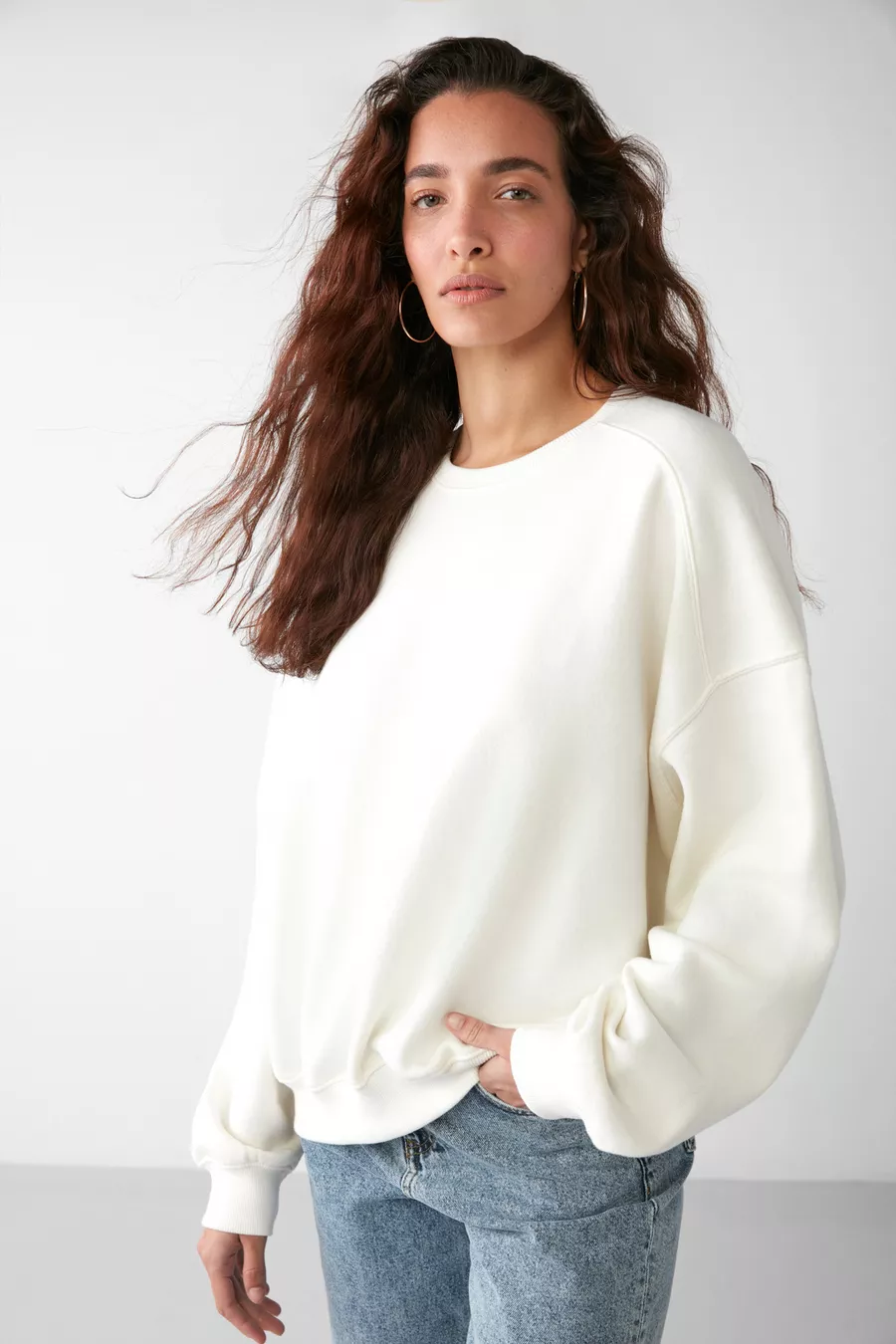 Sweatshirt vanille pour femme, polaire intérieure, 3 fils, coton biologique, oversize, col rond basique
