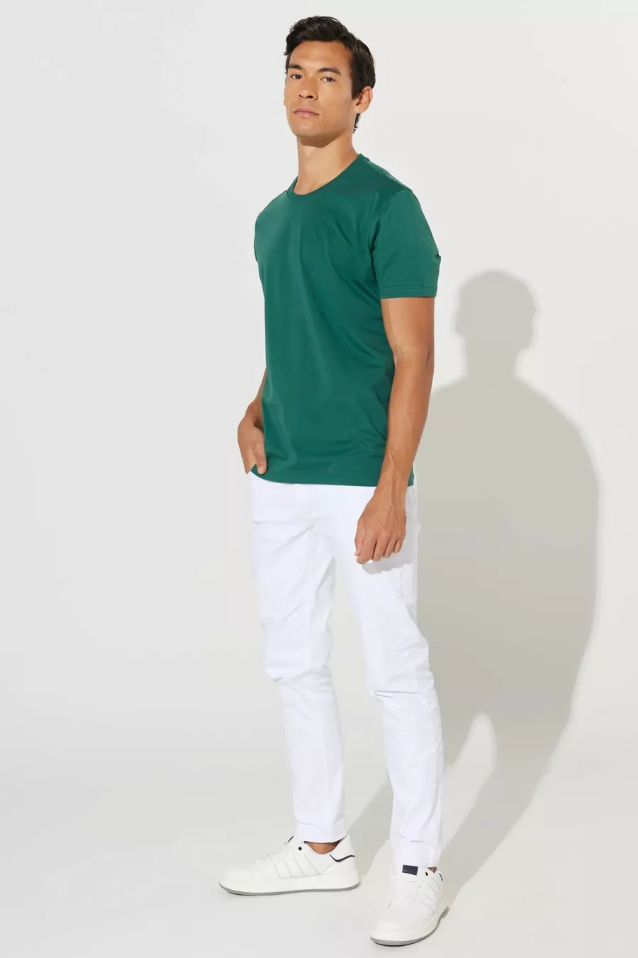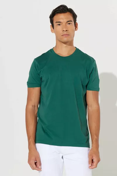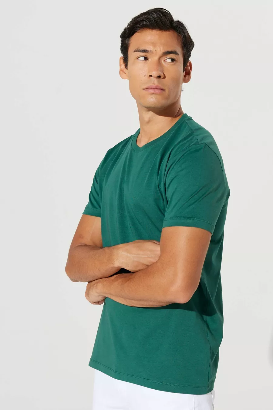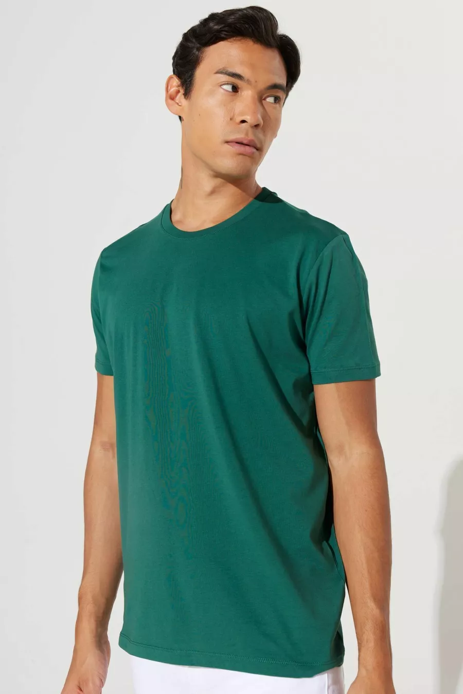 T-shirt basique à col rond % coton coupe slim vert foncé pour homme