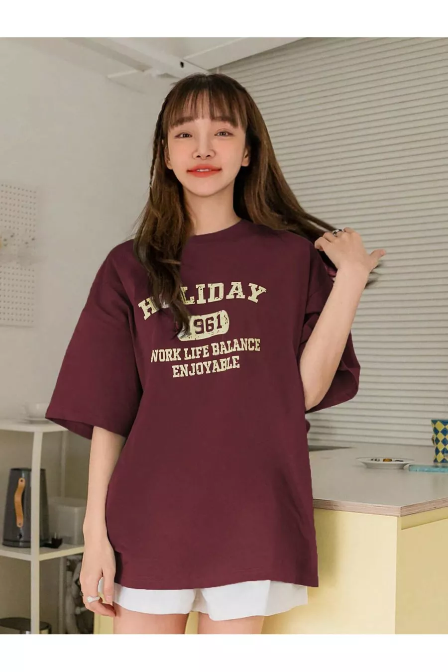 T-shirt oversize en coton à col rond pour femmes/hommes, imprimé spécial coloré HOLIDAY