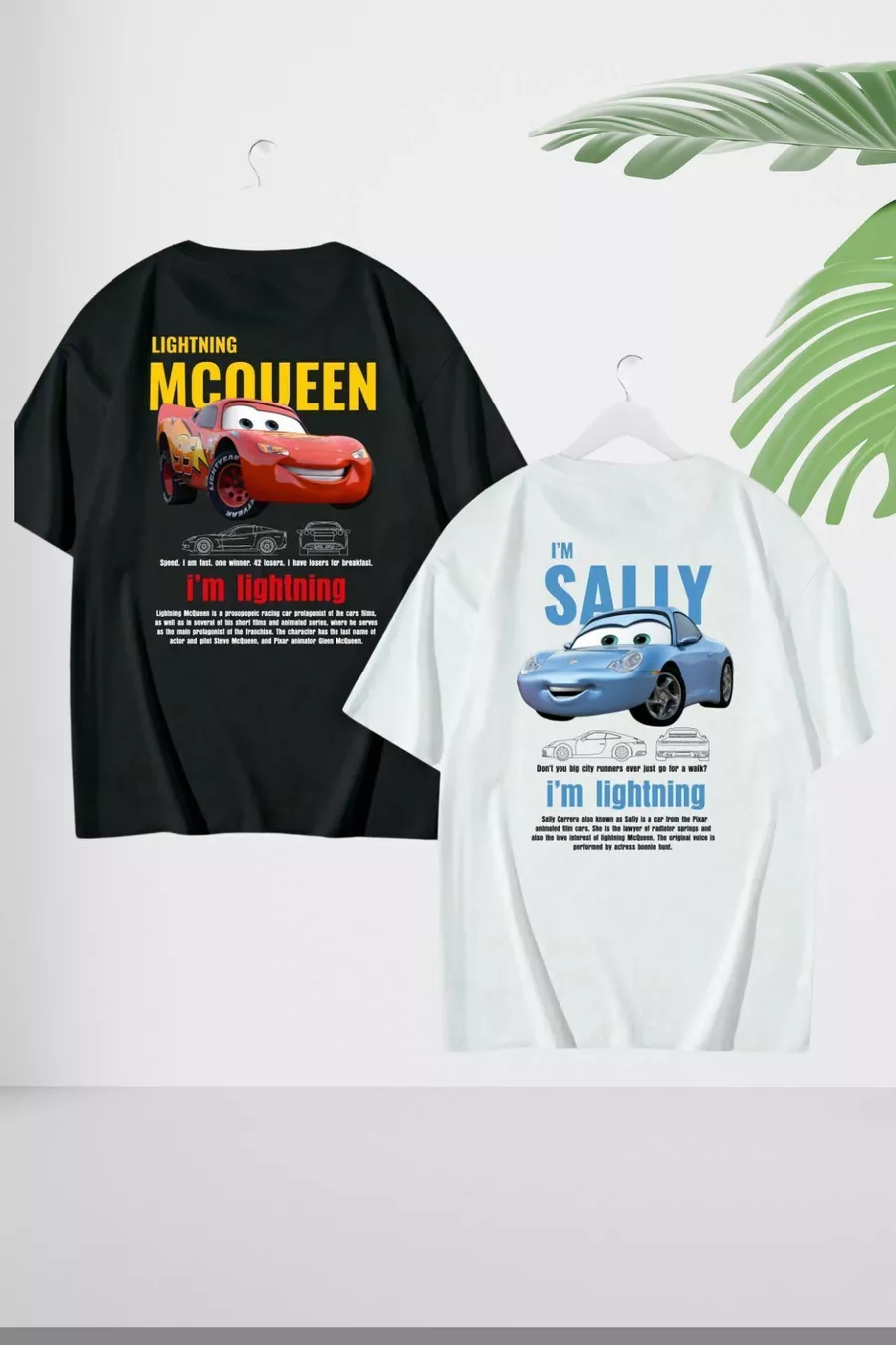T-shirt oversize unisexe Lightning McQueen - Sally Cars, ensemble pour couple, lot de 2