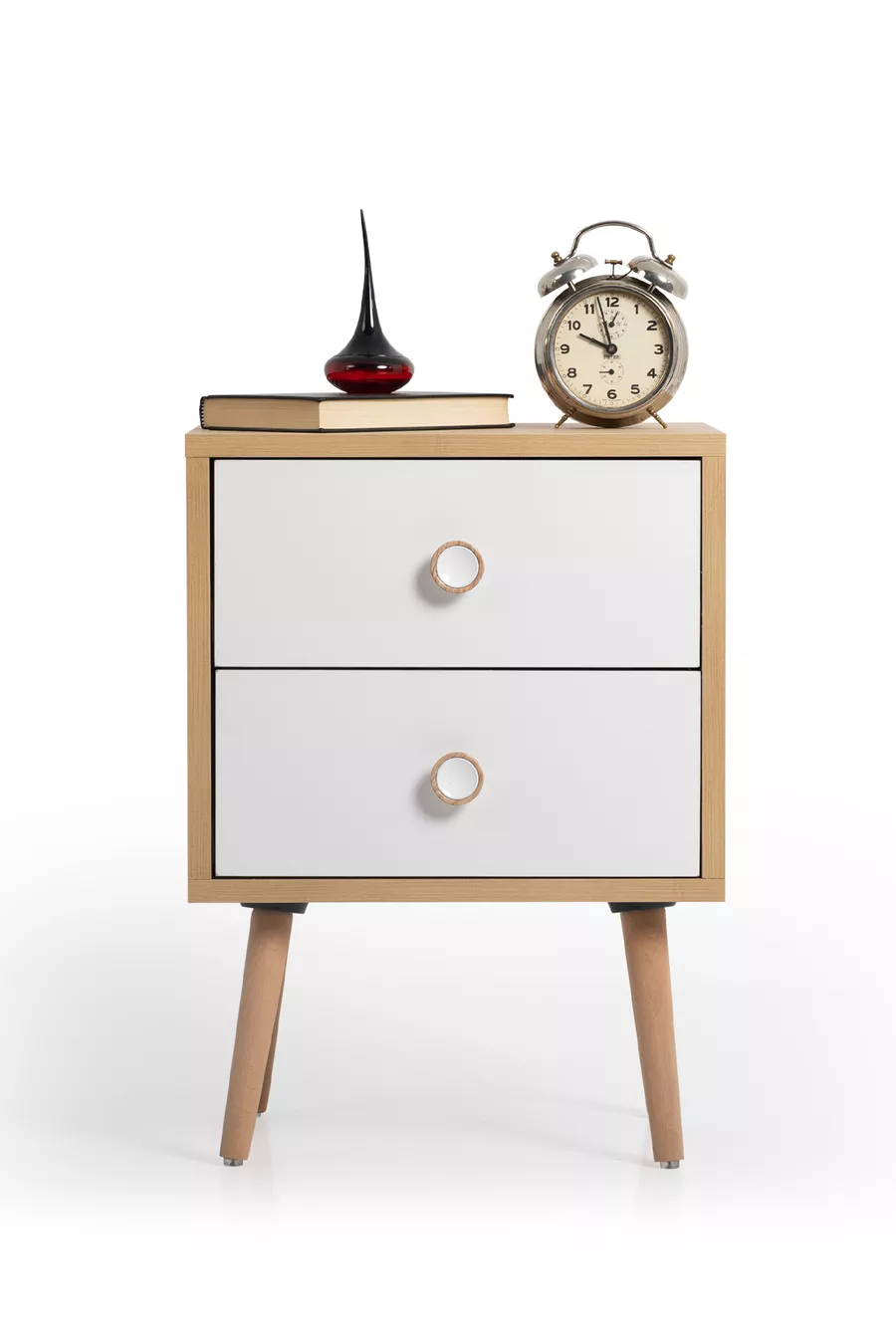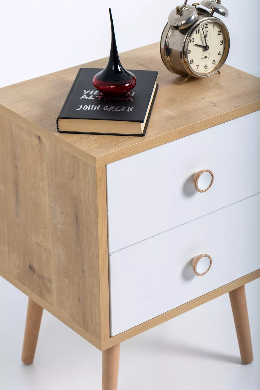 Matériau : Contreplaqué stratifié Couleur : Marron Durée de garantie : 2 ans Nombre de tiroirs : 2 Hauteur : 56 cm Largeur : 42 cm Profondeur : 32 cm Style : Moderne Thème / Style : Moderne Origine : TR Caractéristiques : Avec tiroirs