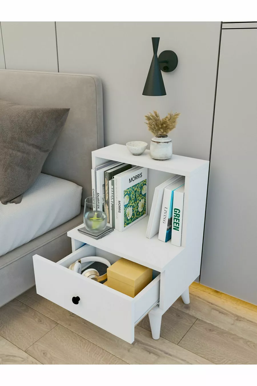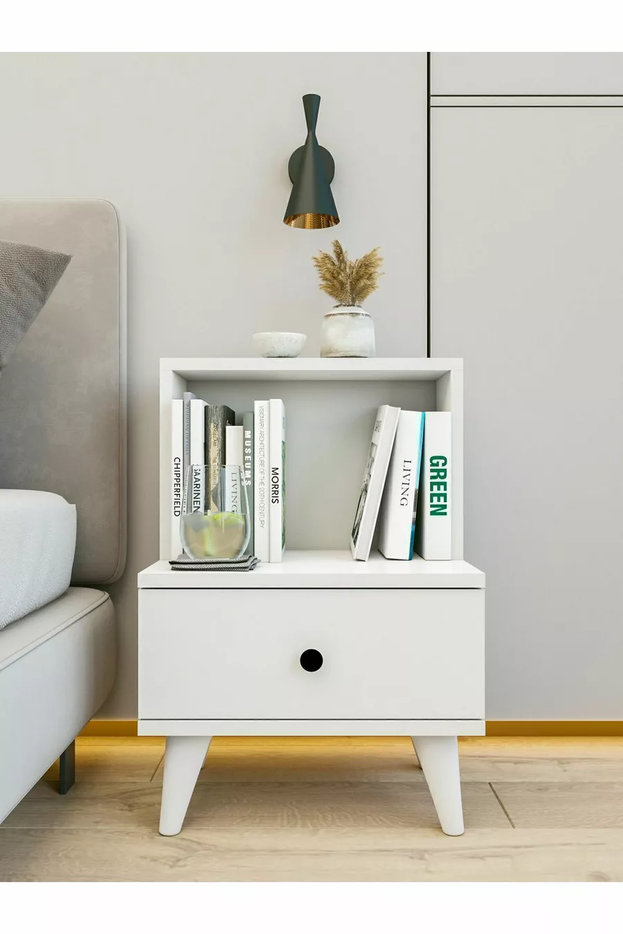 Matériau : Contreplaqué plaqué Couleur : Blanc Durée de garantie : 2 ans Nombre de tiroirs : 1 Hauteur : 65 cm Largeur : 45 cm Profondeur : 33 cm Style : Scandinave Thème / Style : Scandinave Origine : TR Caractéristique : Avec tiroir