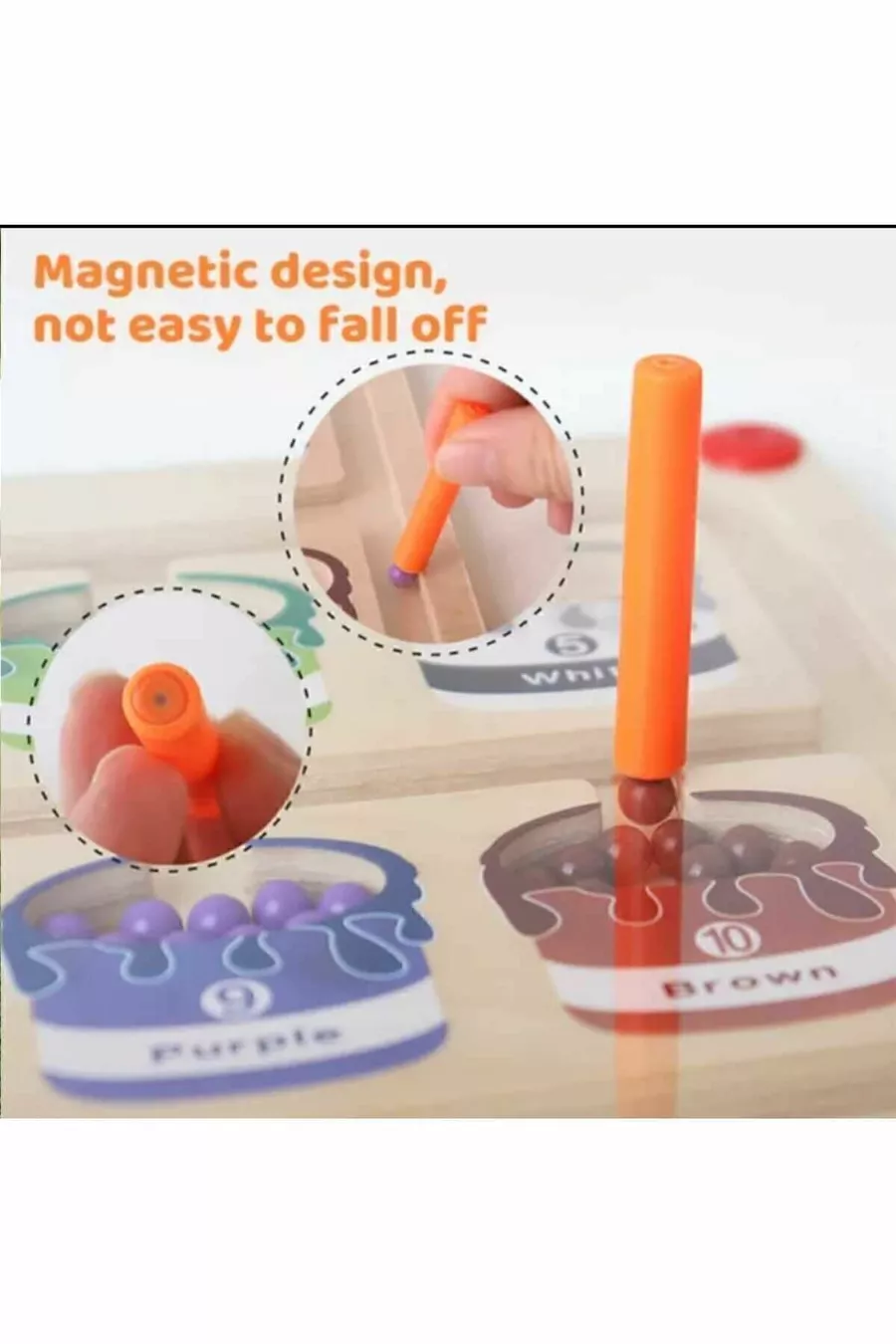 Tableau de puzzle de motricité avec aimants et perles - Couleurs et chiffres - Stylo unique