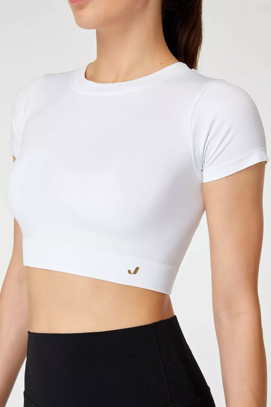 Collection : Basique Motif : Uni Caractéristique supplémentaire : Élastique Coupe : Regular Couleur : Blanc Type de col : Col rond Matériau : Polyester Type de tissu : Tricot Type de manche : Manches courtes Technologie du tissu : Séchage rapide Composition du matériau : 53 % Polyester, 42 % Polyamide, 5 % Élasthanne Instructions de lavage : Type 1 Longueur : Crop Silhouette : Crop Longueur des manches : Courte Détail sur la durabilité : Non Occasion : Décontracté/Quotidien Origine : TR Contenu du paquet : Unique