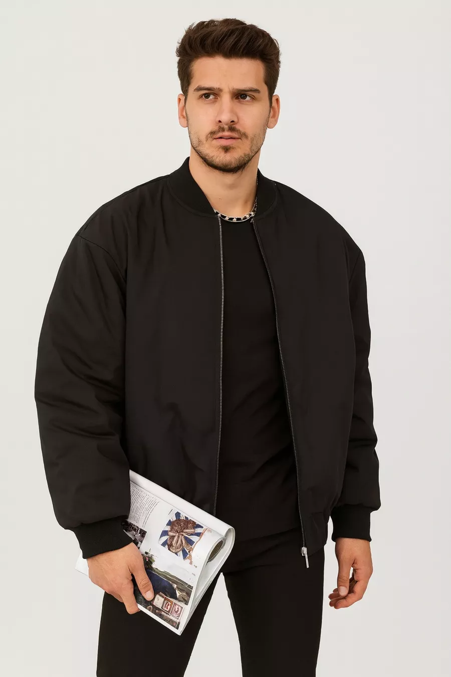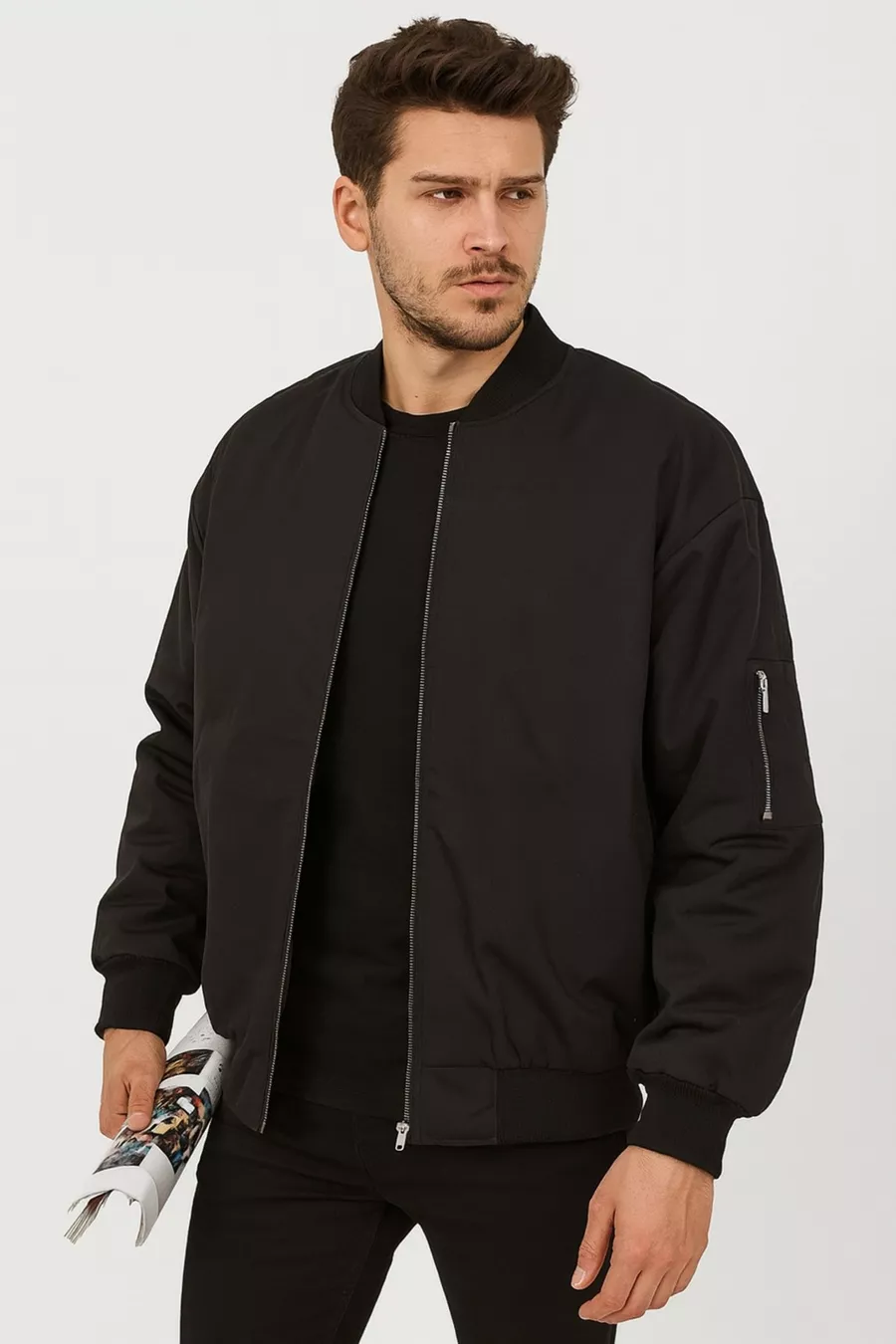 Veste bomber noire unisexe compatible avec homme