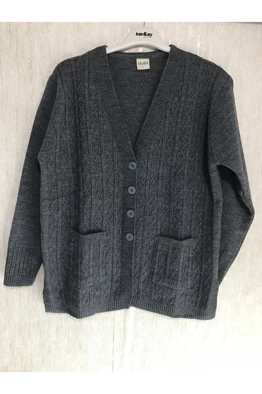 Veste d'hiver pour maman en laine épaisse tricotée avec poches et boutons