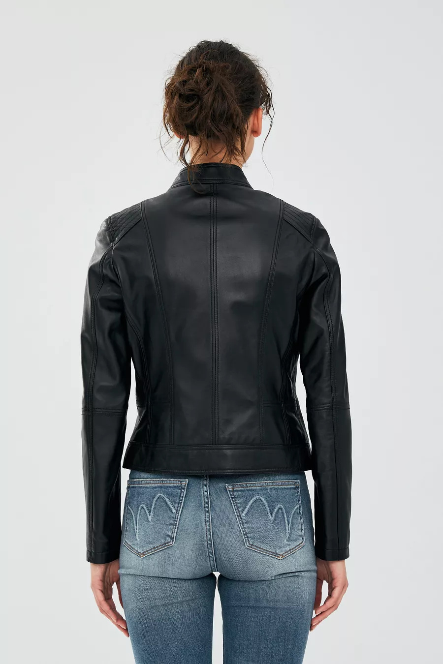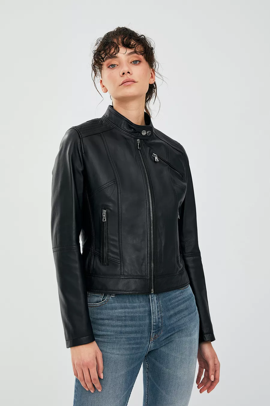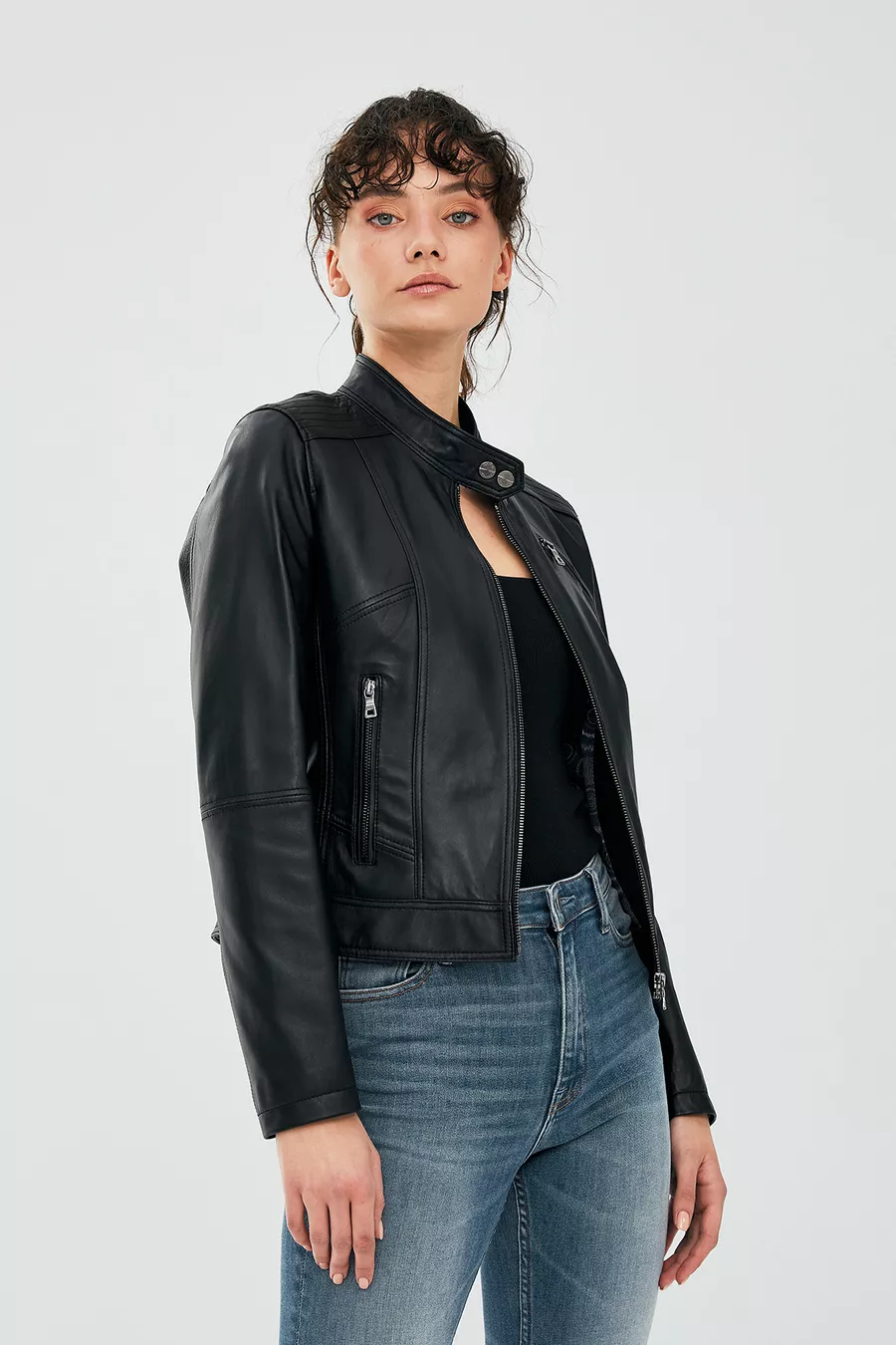 Veste en cuir courte noire pour femme Kylie M
