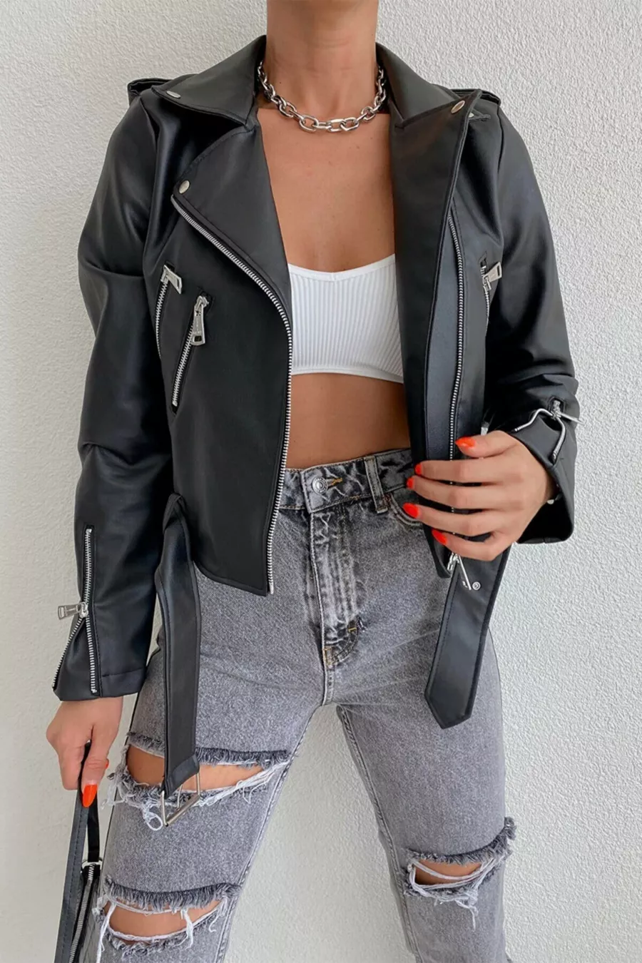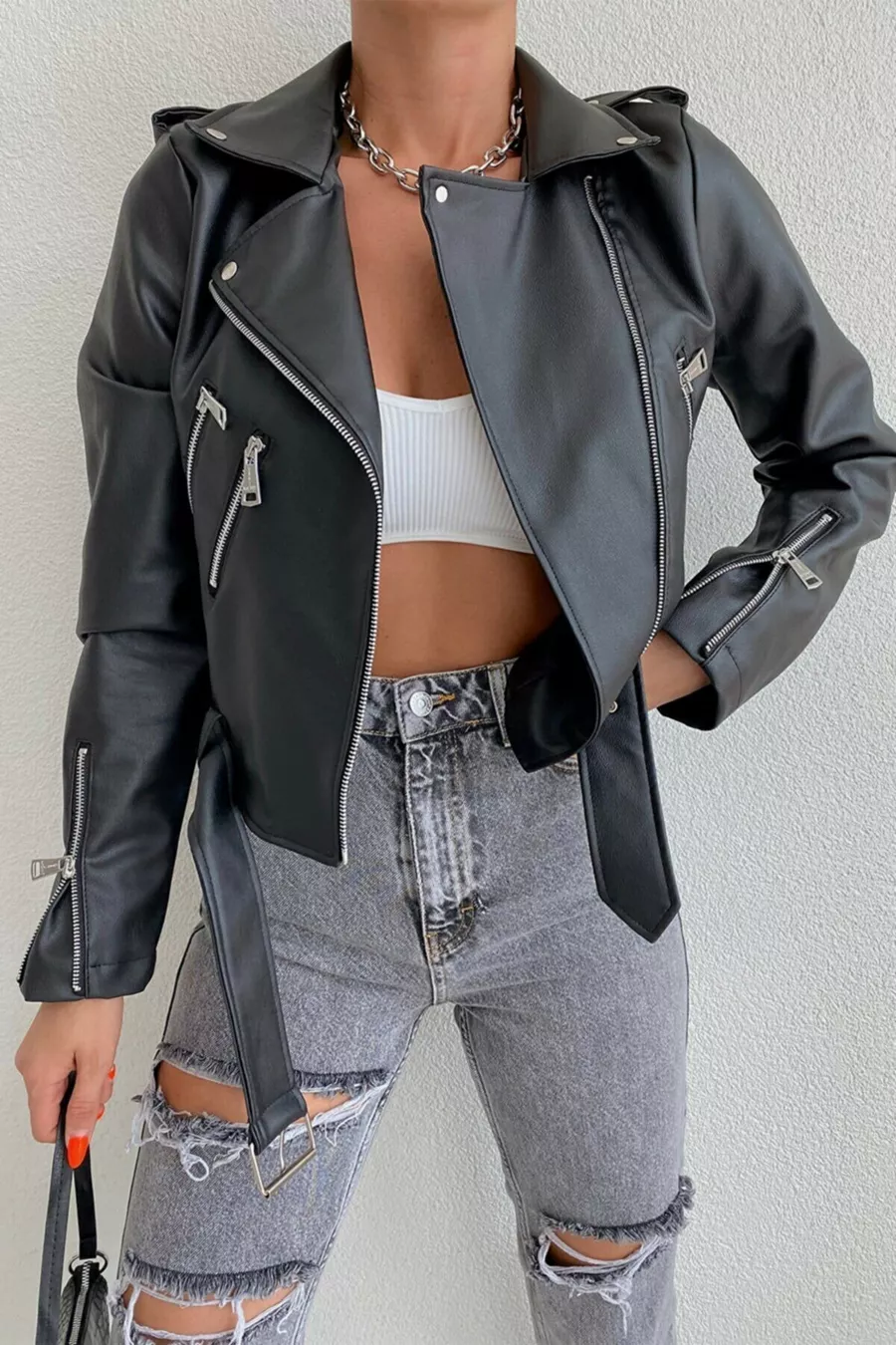 Veste en cuir femme avec poches noires