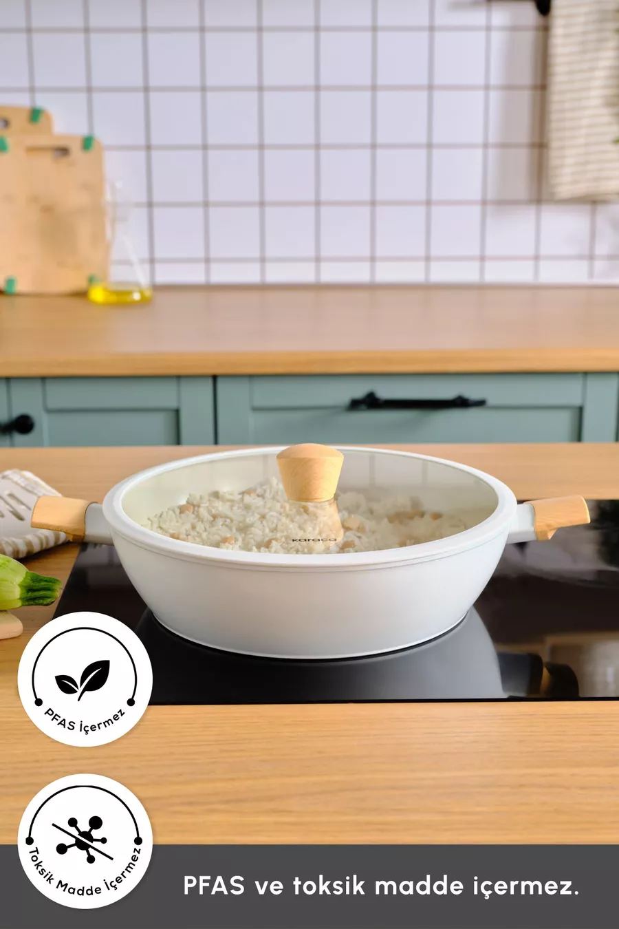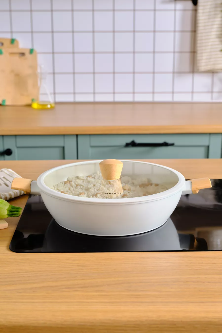 Couleur : Beige Taille/Dimensions : 26 cm Caractéristique : Compatible avec les plaques à induction Matériau extérieur : Revêtement suisse Matériau intérieur : Revêtement suisse Nombre de pièces : 2 Origine : CN Matériau : test