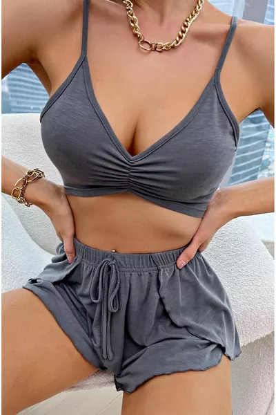 Серый женский плюшевый пижамный комплект с рисунком снежинки