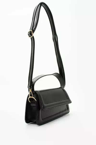 Женская черная сумка-багет на подкладке с ремешком