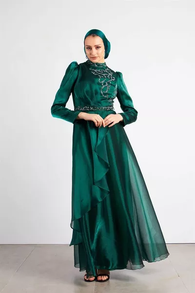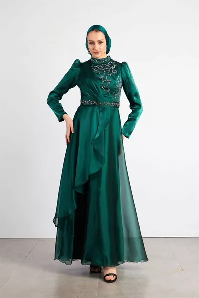 Хиджаб Вечернее Платье с Ямочками и Цепочками и Полосками