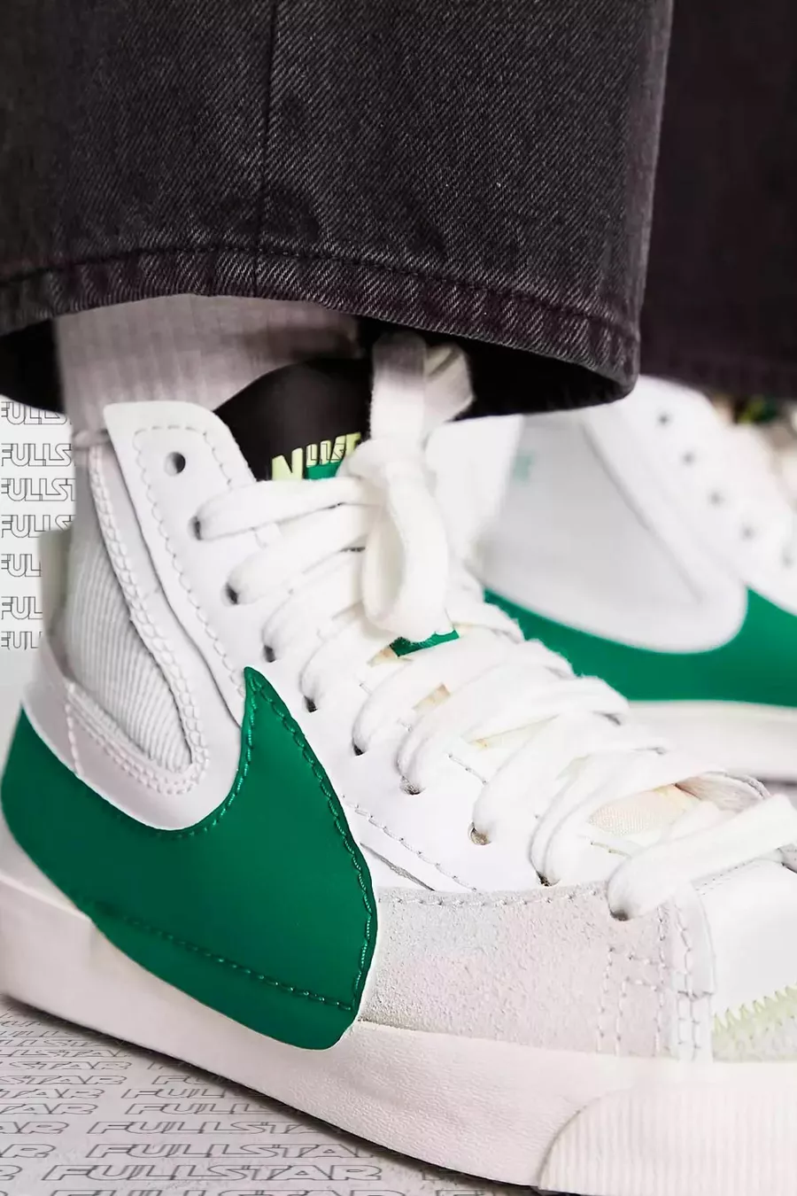 Блейзер Mid Джамбо Кожа Натуральная Кожа Повседневные Ботильоны Кроссовки Белый Зеленый