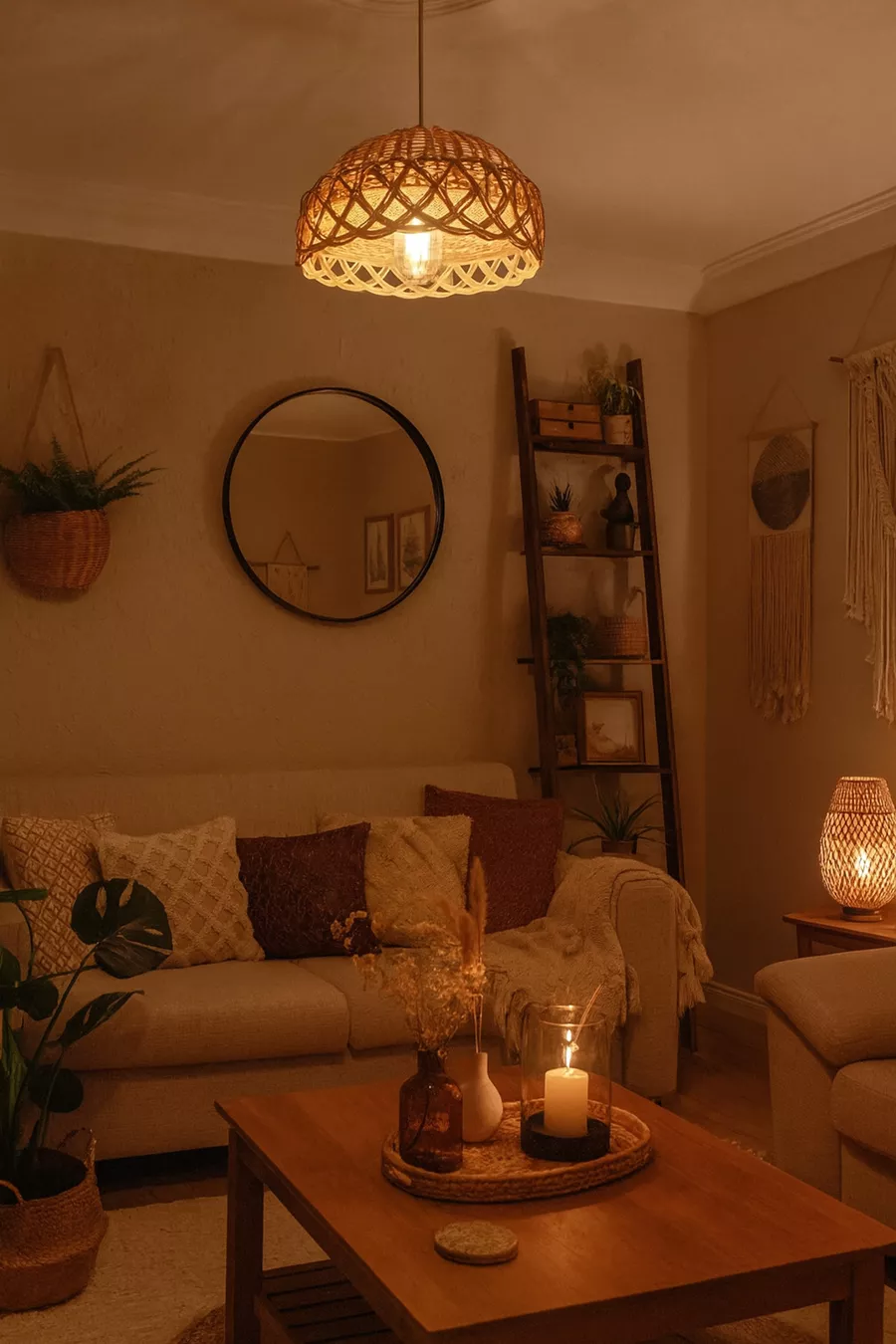 Богемская люстра из ротанга и бамбука, диаметр см, светло-кремовый цвет