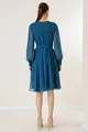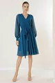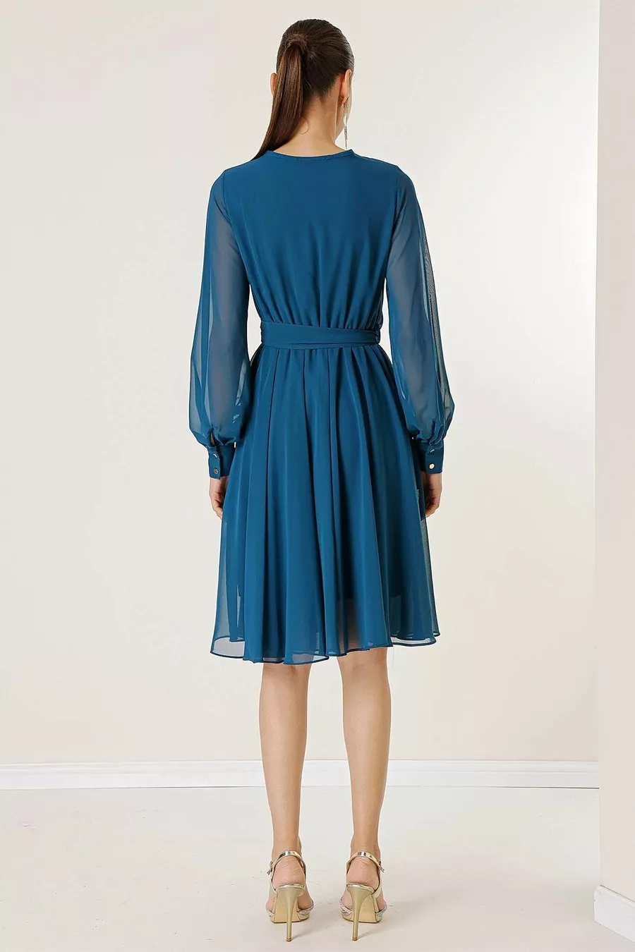 Двубортный воротник Платье из шифона с длинным рукавом и подкладкой