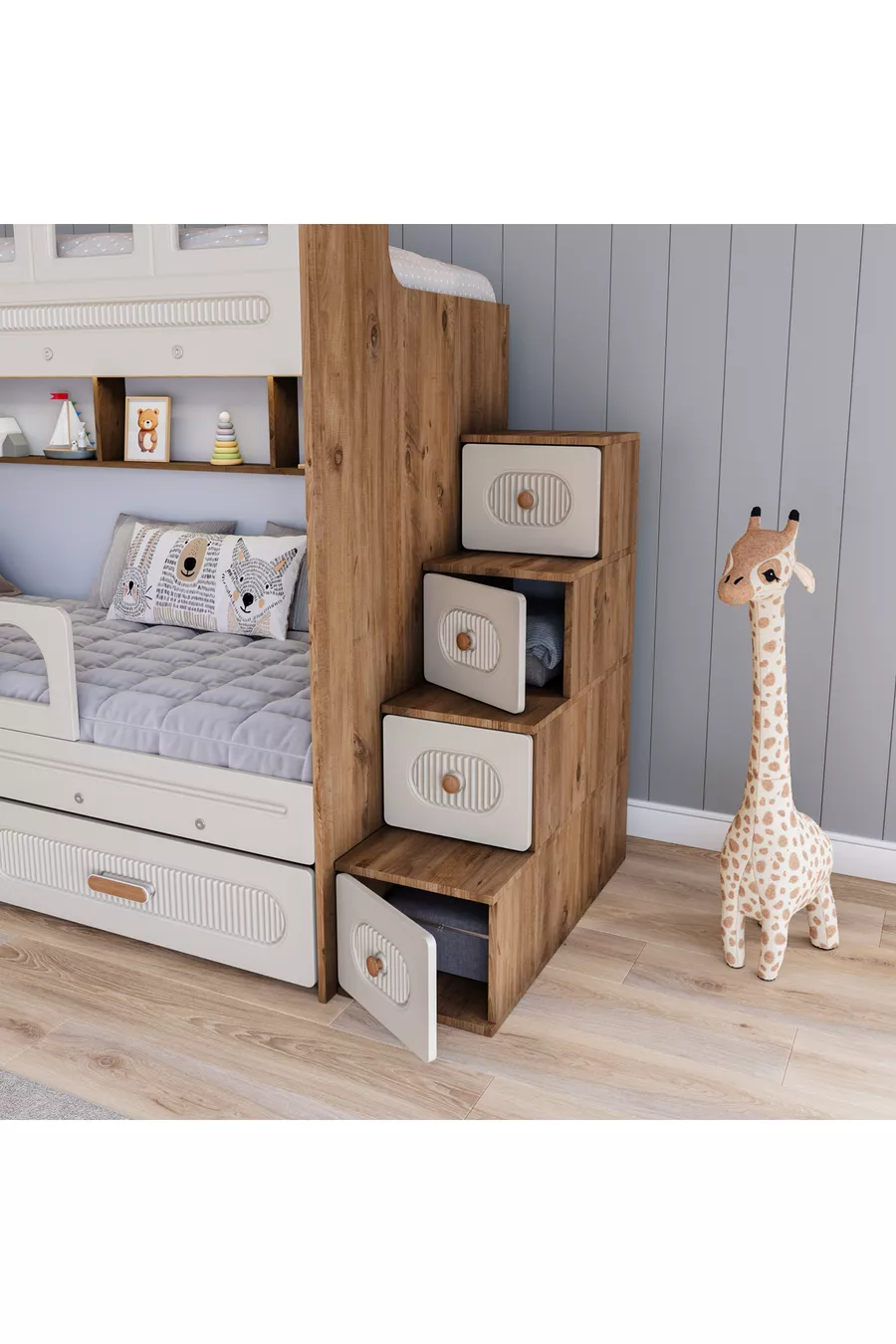 Двухъярусная кровать-бочка с ящиком (Айташ)