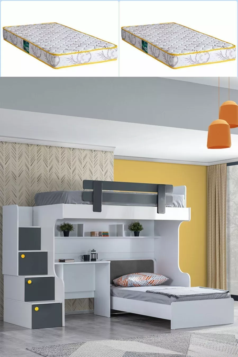 Двухъярусная кровать Metris с письменным столом и 2 матрасами Comfort
