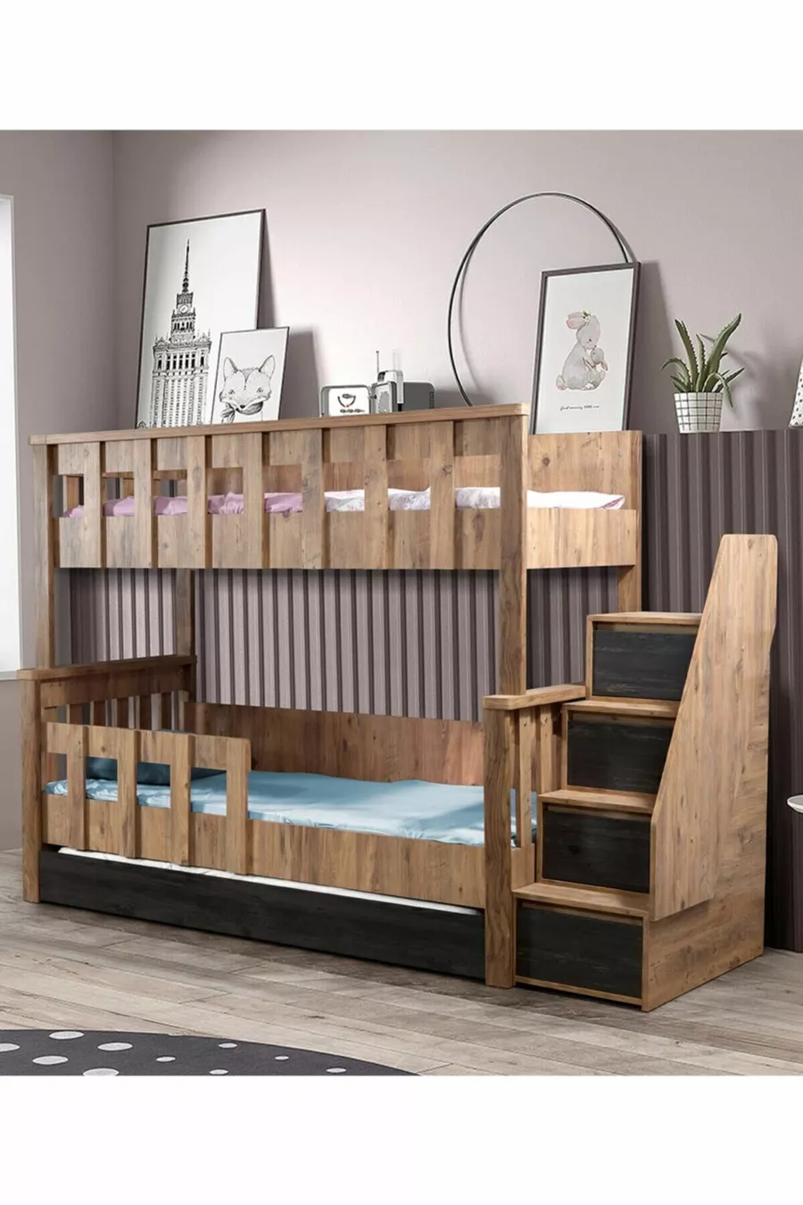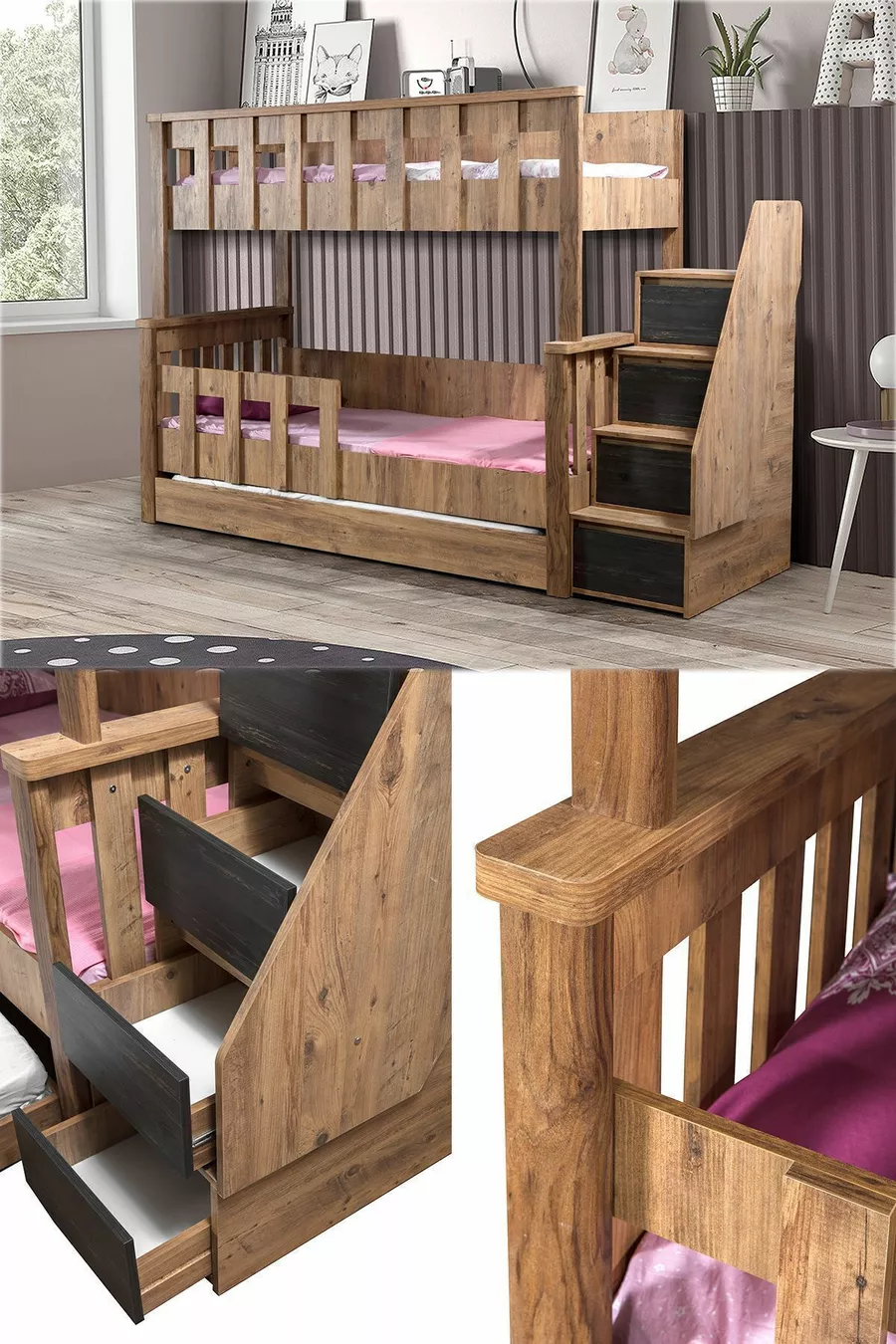 Двухъярусная кровать Ranza, профиль MDF Diva, с лестницей Diva, съемная, трехъярусная