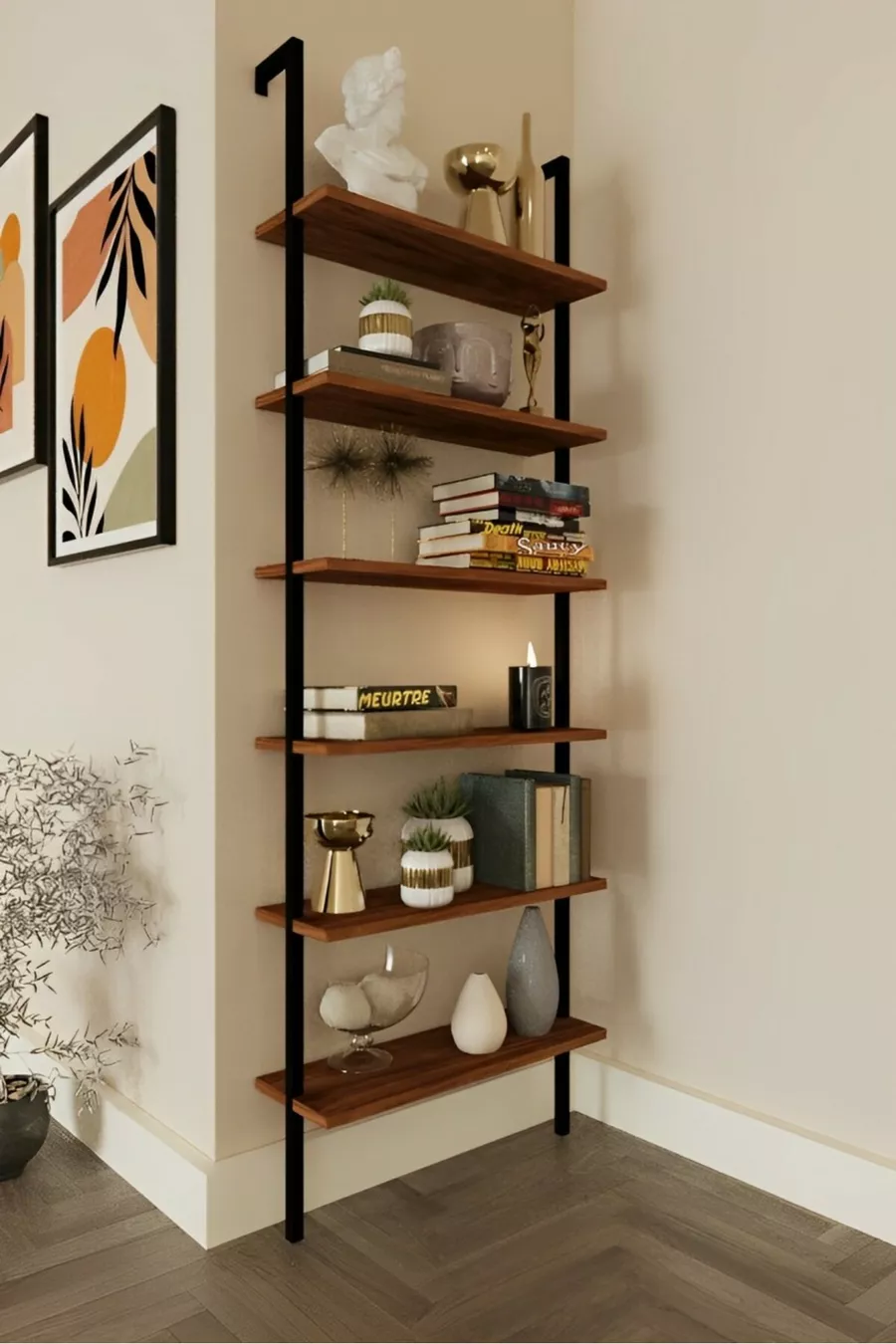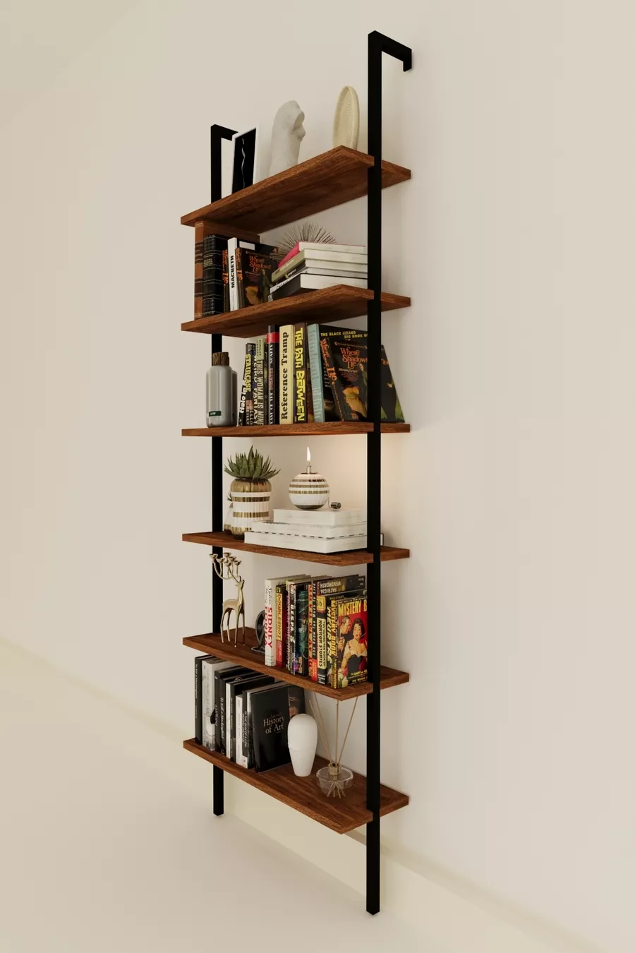 Тип: Настенный Материал: ДСП Цвет: Коричневый Высота: 180 см Ширина: 60 см Глубина: 20 см Количество полок: 6 Материал корпуса: Дерево Стиль: Скандинавский Тема / Стиль: Скандинавский Происхождение: Турция Особенность: Воздух