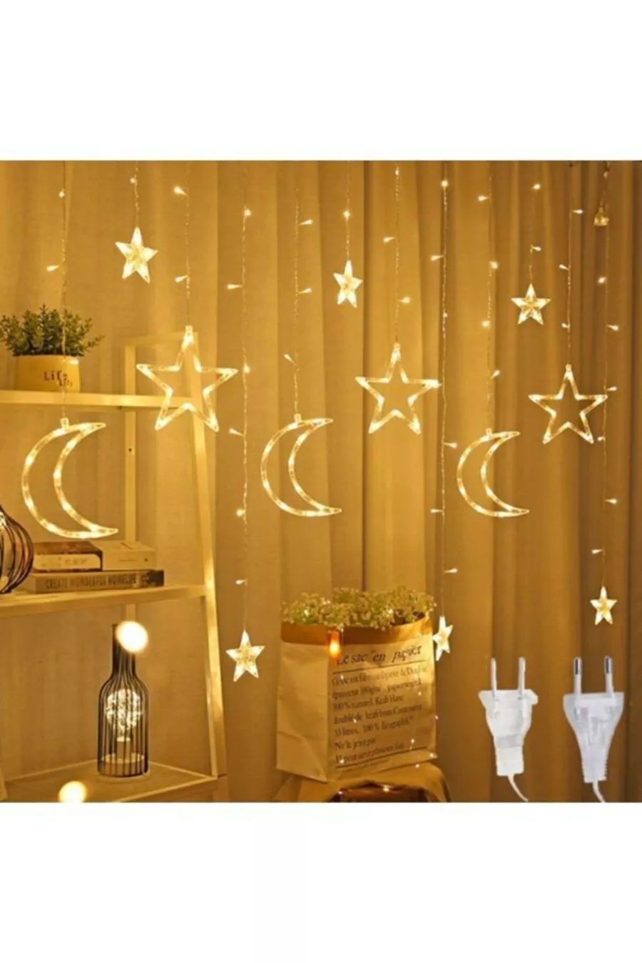 Декоративная шторка с 8 функциями с полумесяцем и звездой, светодиодная, подвесных светодиодов, дополнительная звездная подсветка