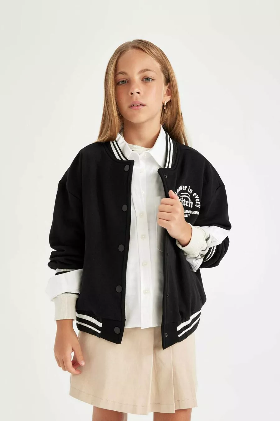 Детский кардиган-бомбер для девочек с воротником-поло, пуговицами, карманами, легкий, сезонный, мягкий внутри, артикул