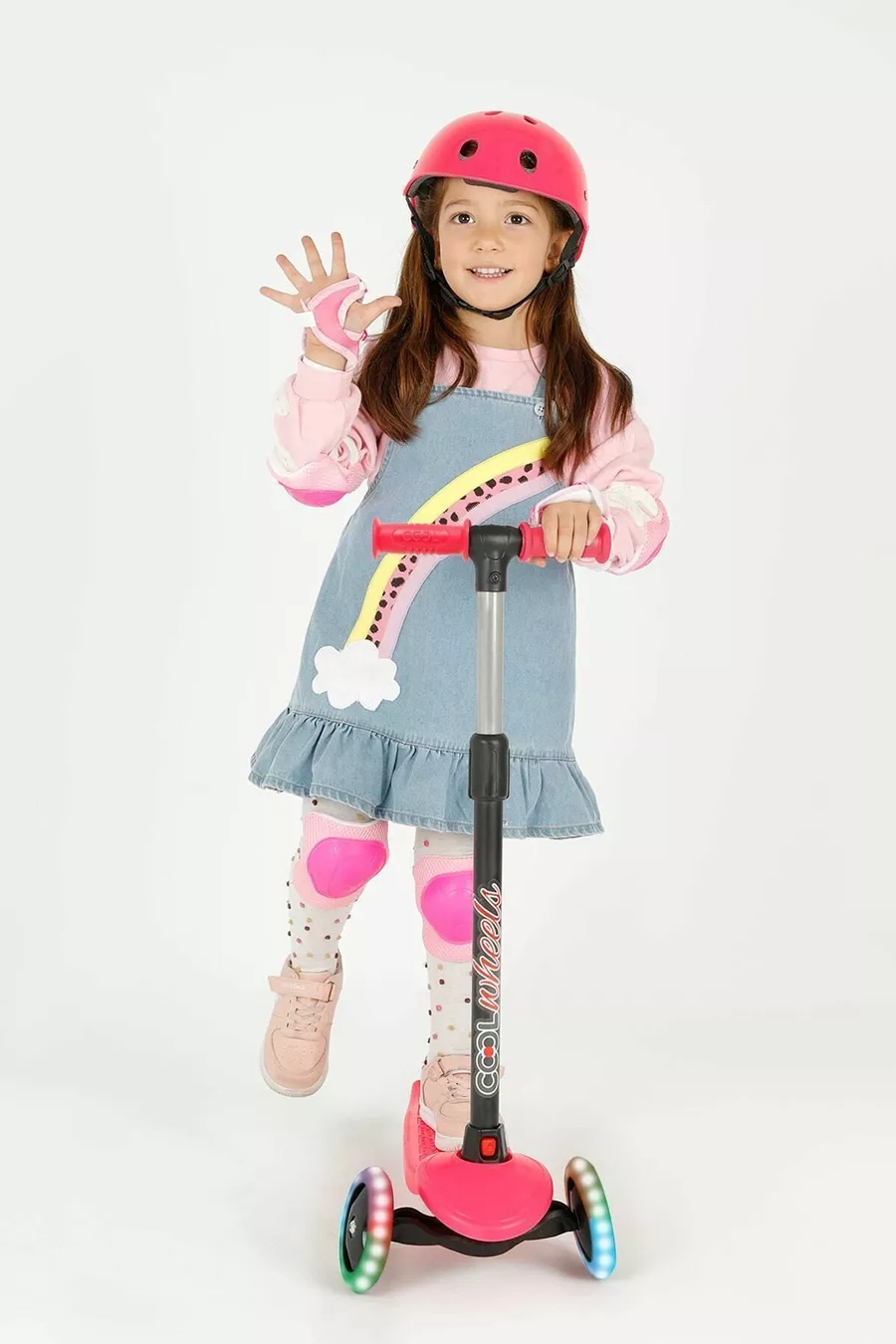 Детский трехколесный самокат со звездными огнями, розовый, от 3 кг