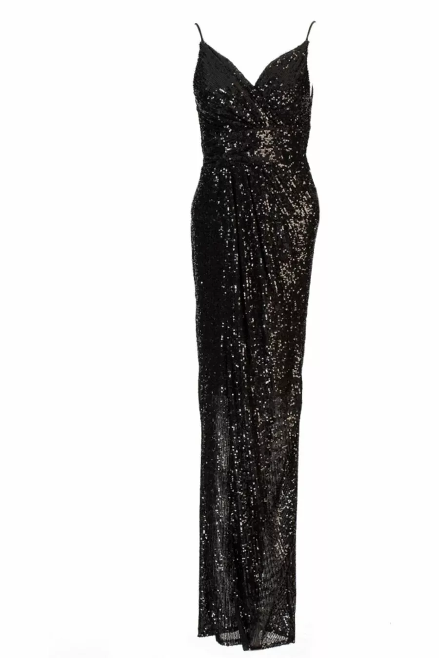 Длинное платье с пайетками и лямками на шнурке на талии - черный