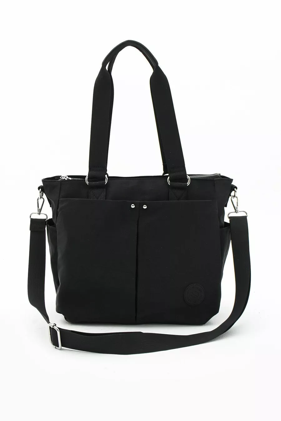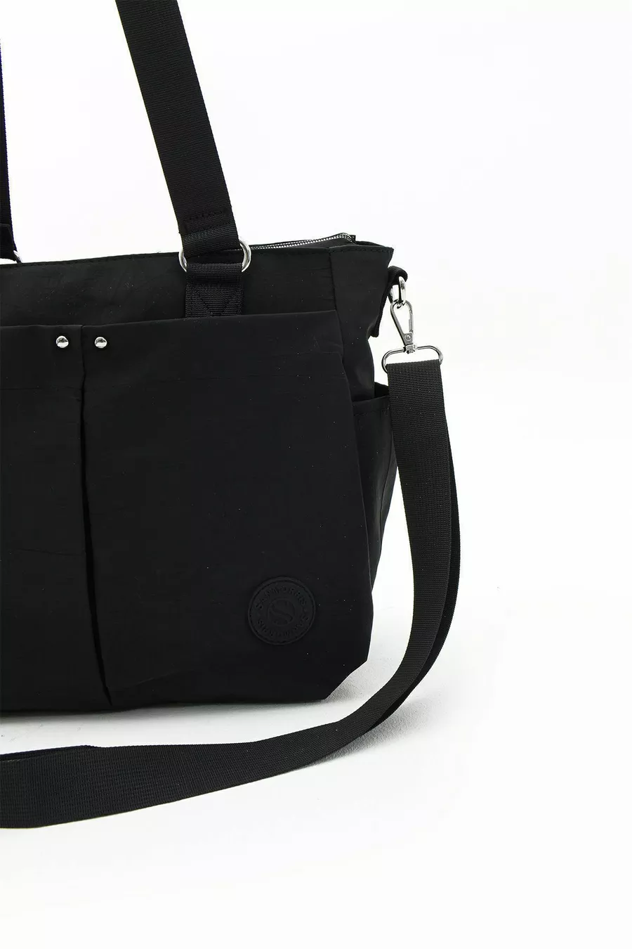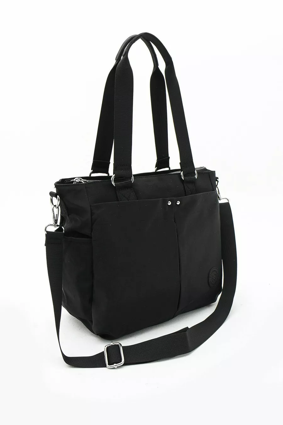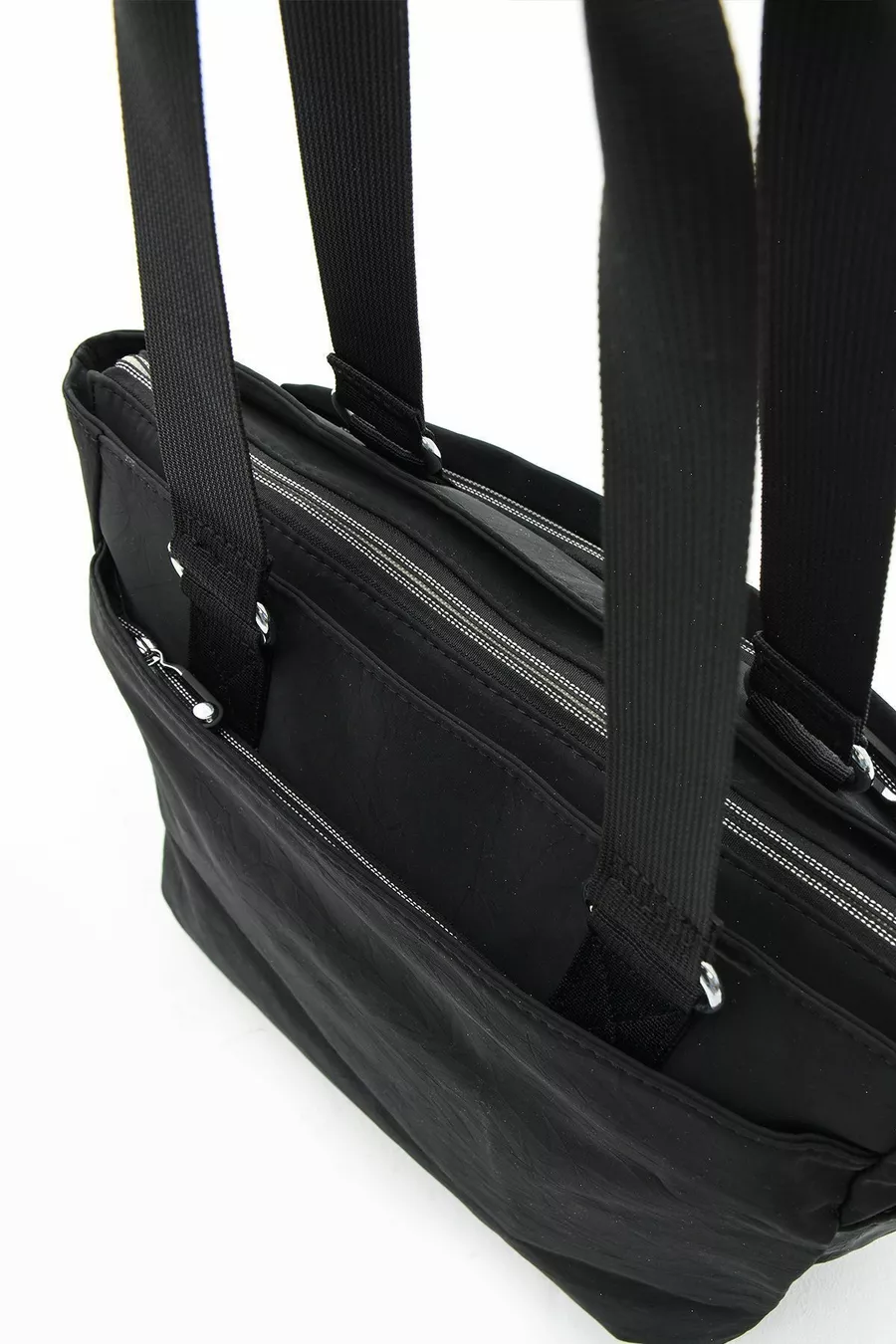 Женская многоотсекная практичная водонепроницаемая сумка для руки и плеча черного цвета