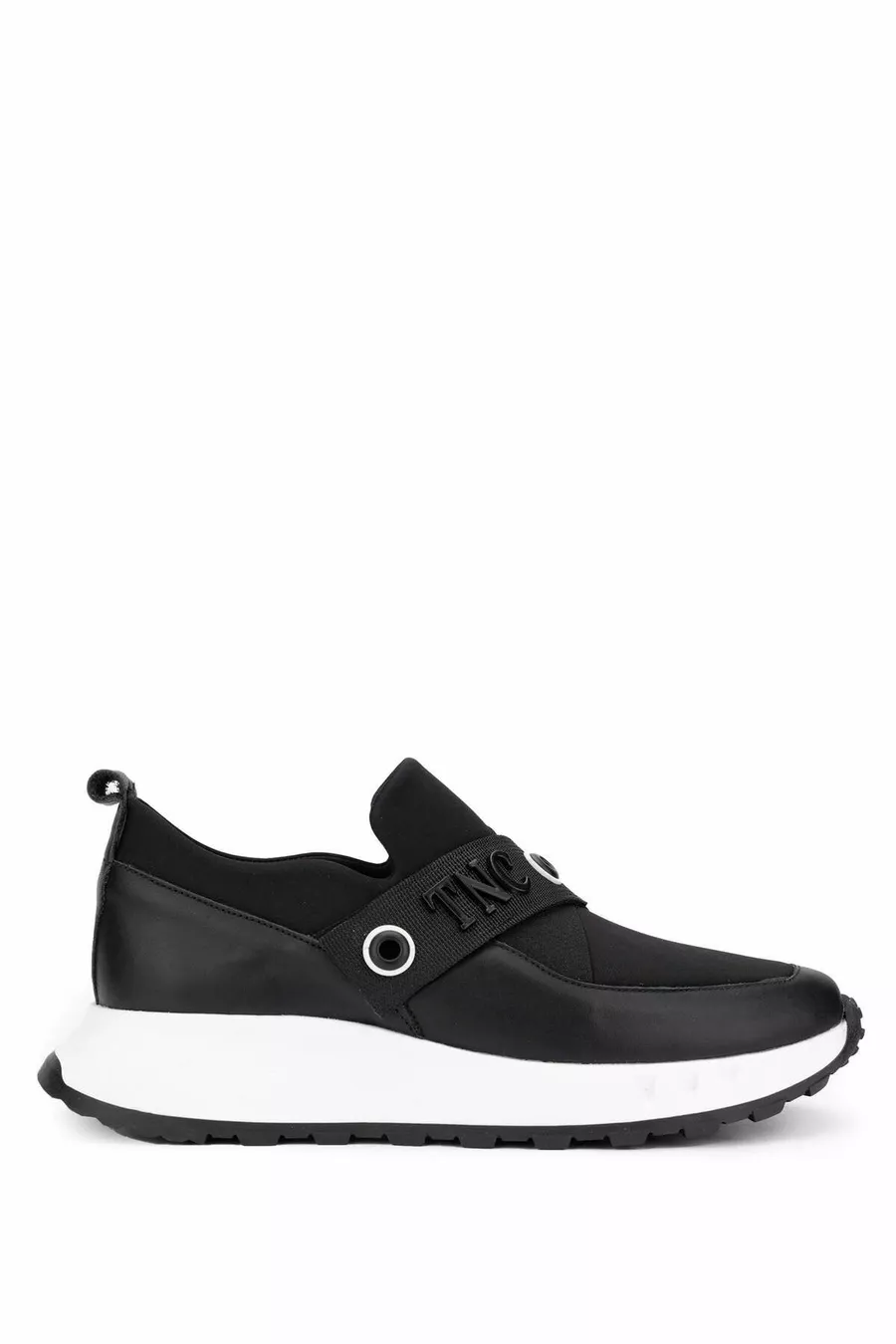 Женские кожаные соломенные черные кроссовки и кроссовки