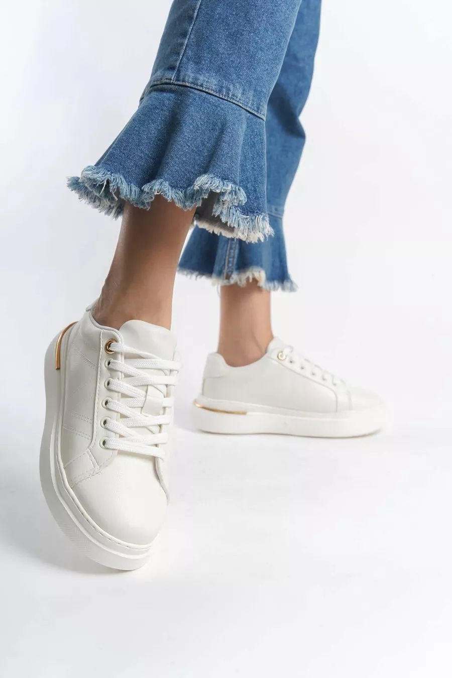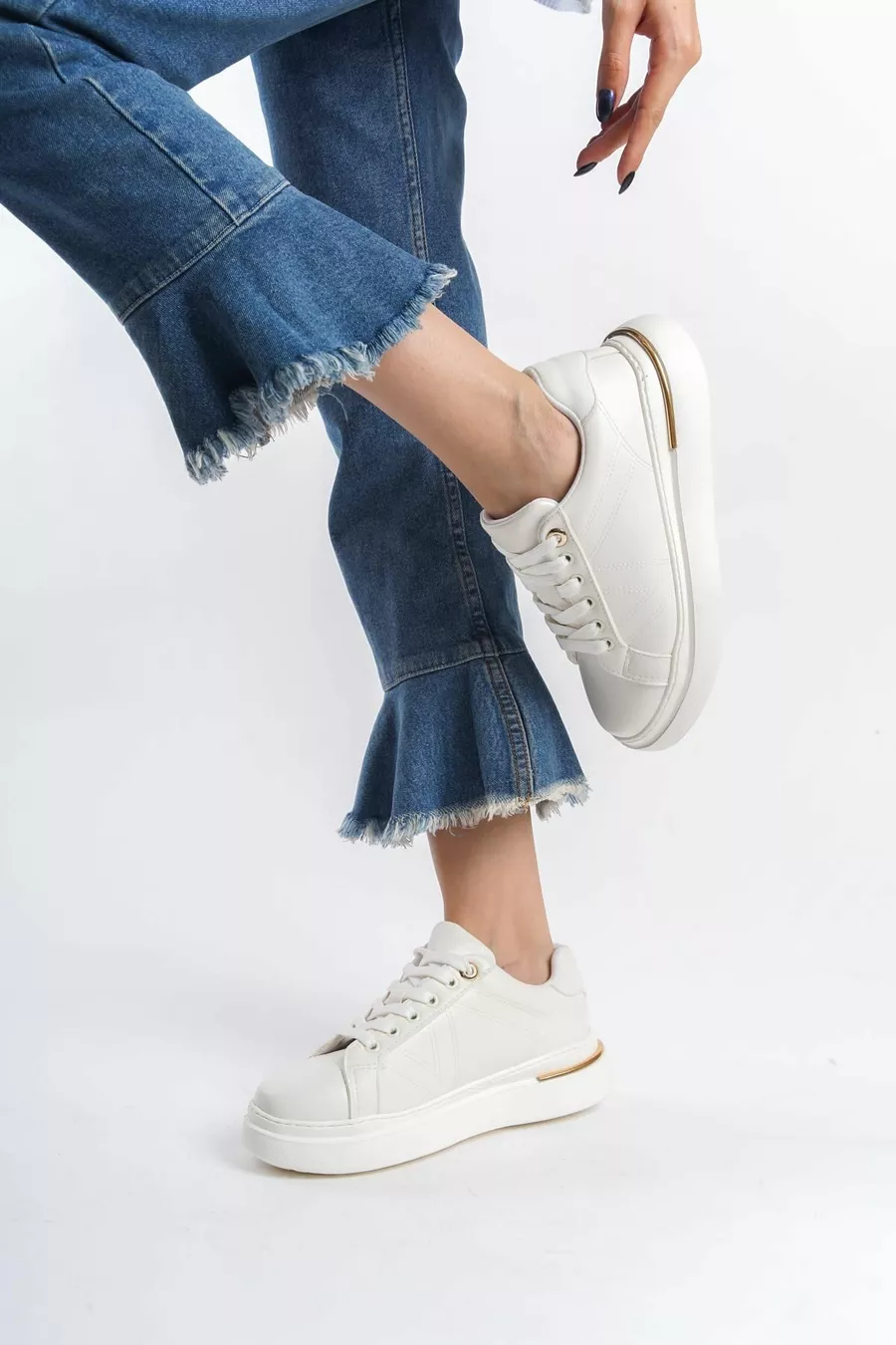 Женские кроссовки на шнуровке с золотой детализацией на толстой подошве Повседневные кроссовки Кроссовки