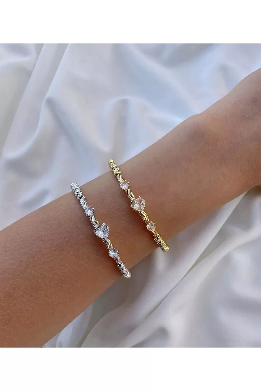 Женский браслет Dorika с сердцем и камнями серебристого цвета