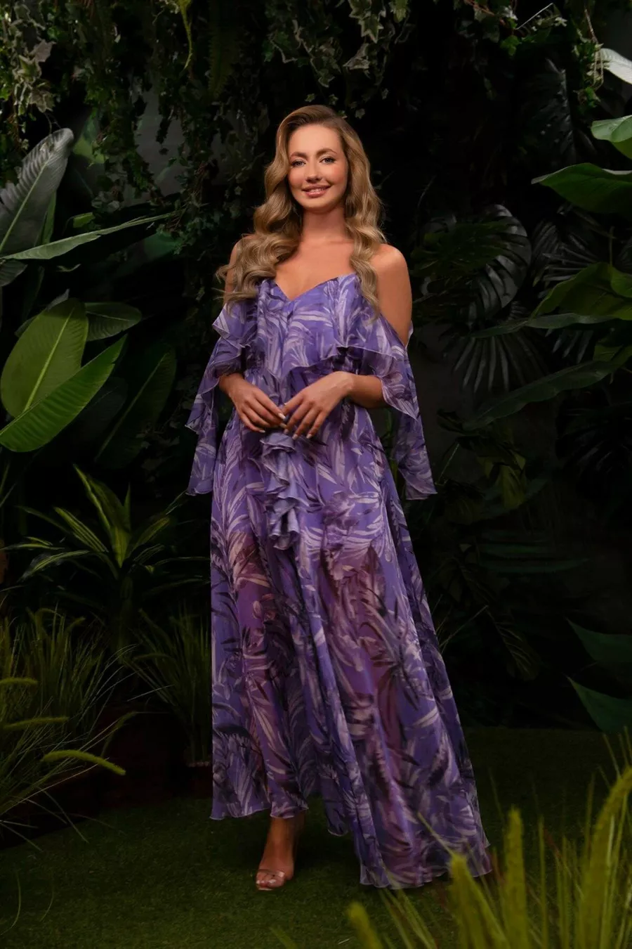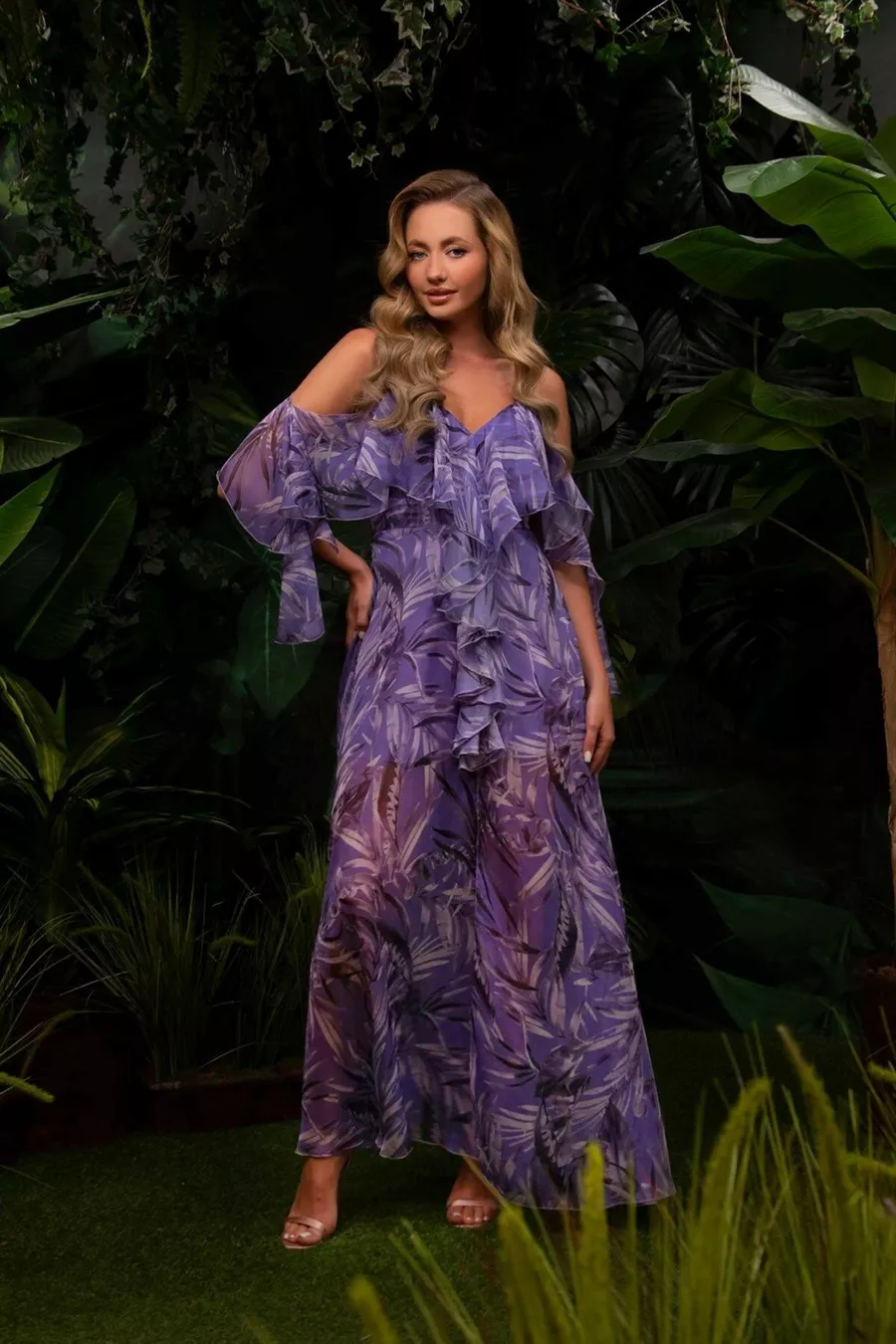 Женское узорчатое шифоновое вечернее платье сиреневого цвета