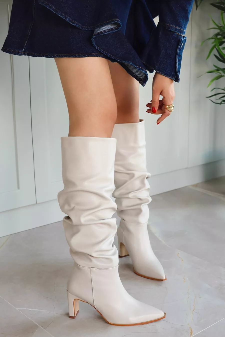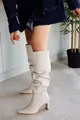 Изогнутые каблуки ниже колена, заостренный носок, матовая кожа, черные женские сапоги со складками