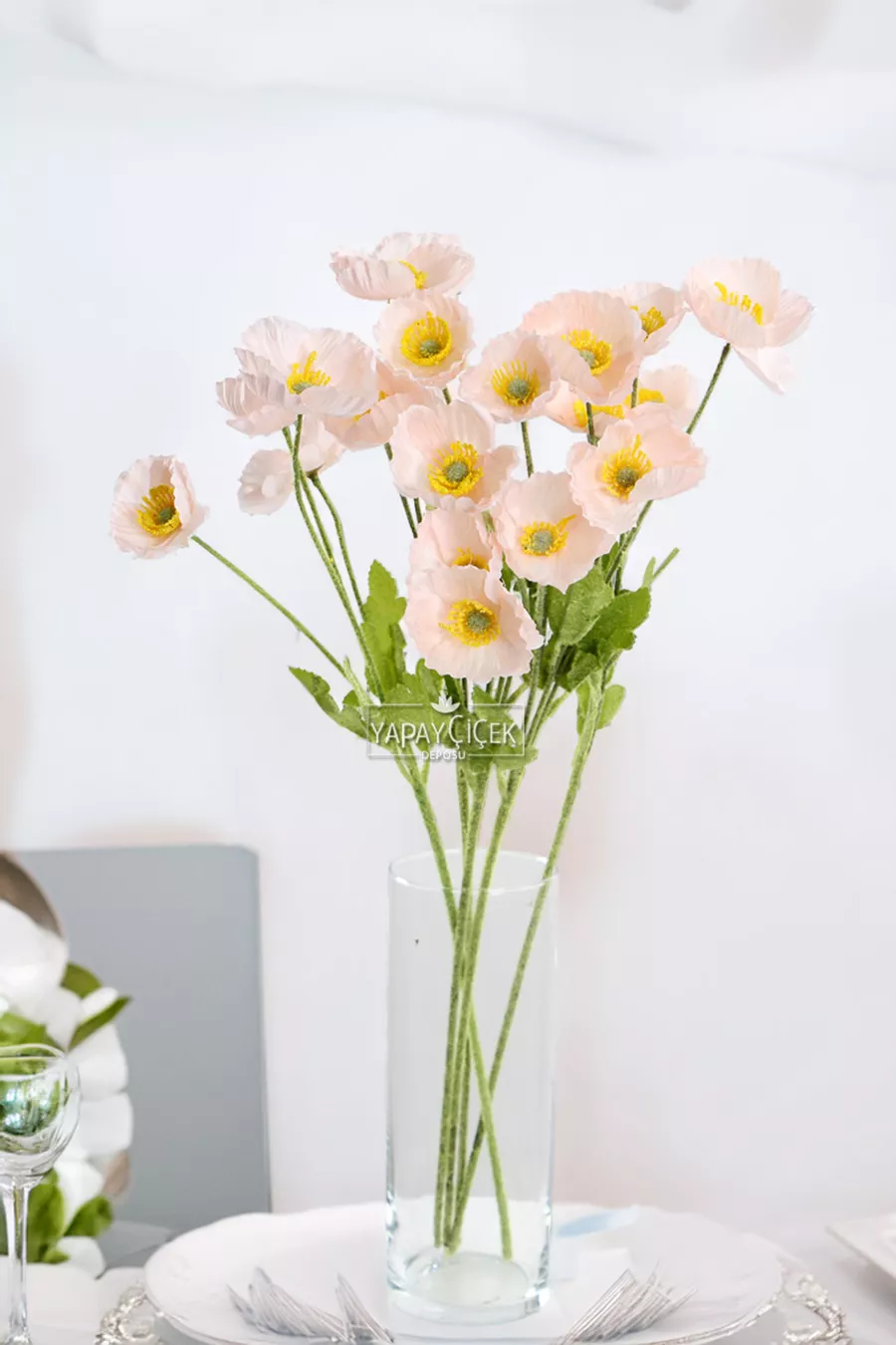 Искусственные цветы, набор из 4 веток мака, см, пудровый