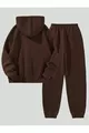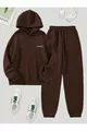 Калифорнийский минималистичный комплект худи и джоггеров - коричневый с принтом, оверсайз, с ворсистой подкладкой, с капюшоном