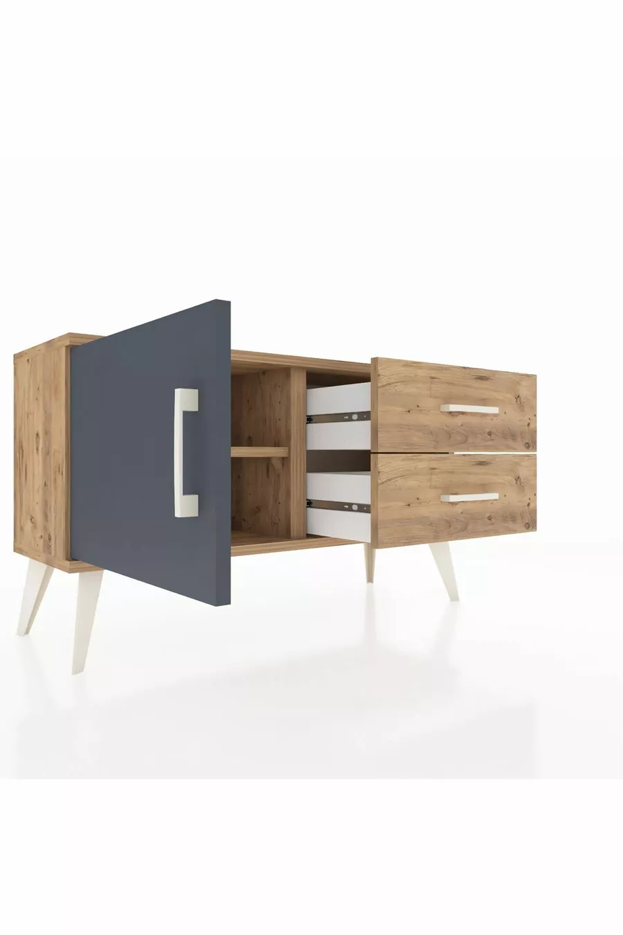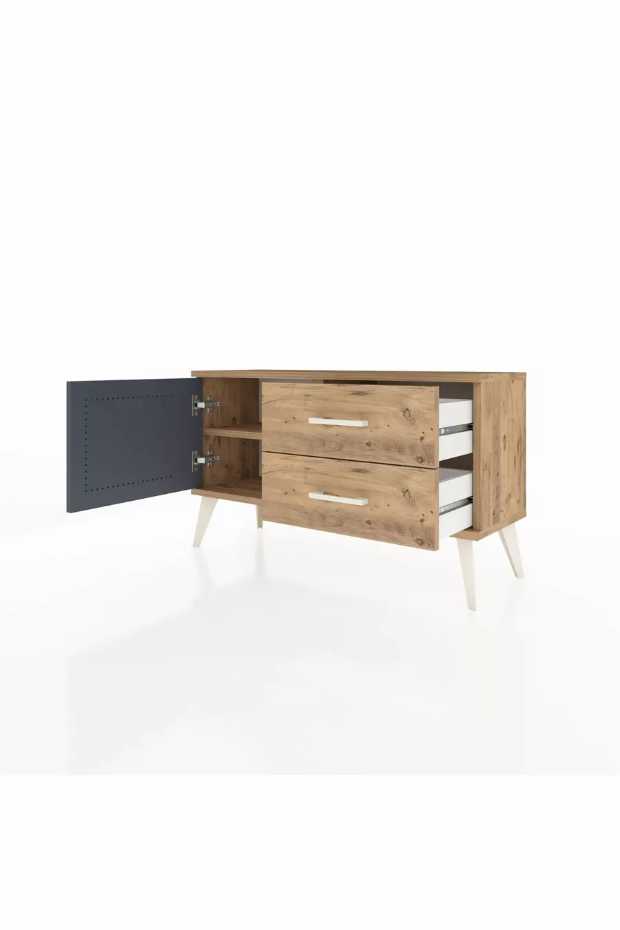 Комод Arges с одним открытым отсеком, 2 ящиками и одной дверцей, сосна-антарцит/сосна