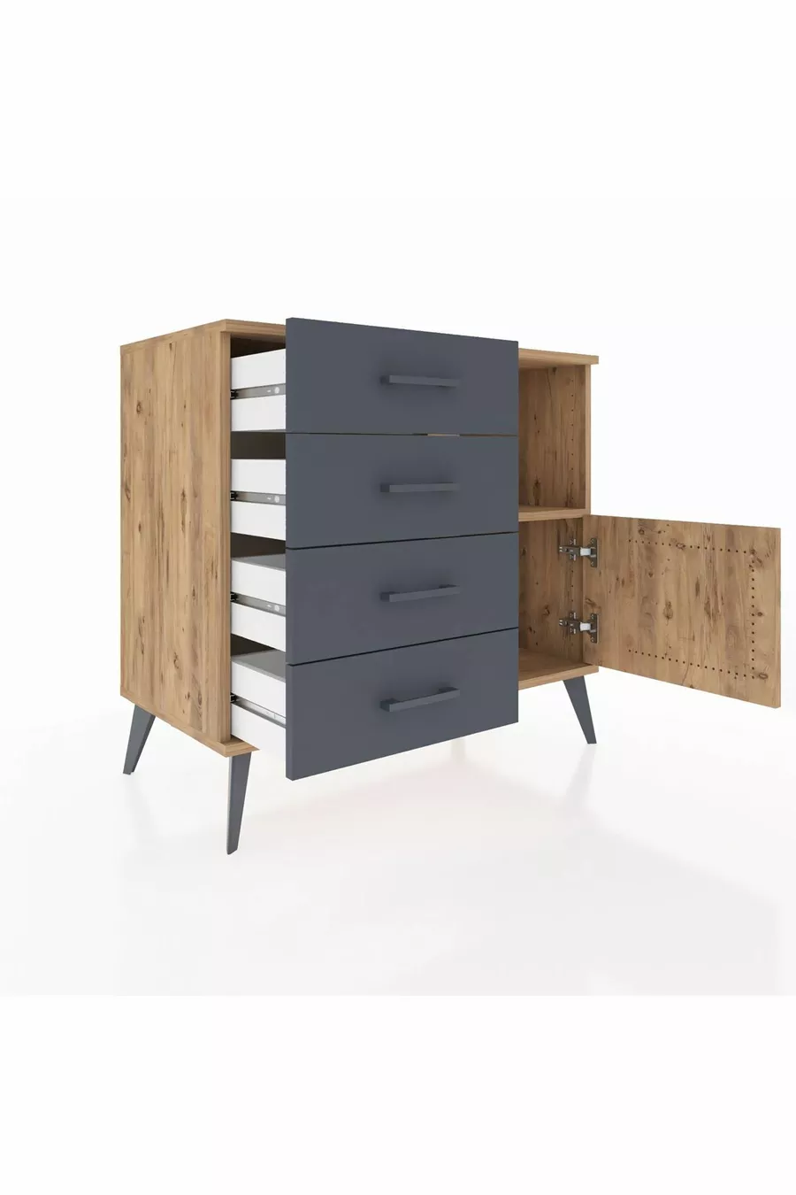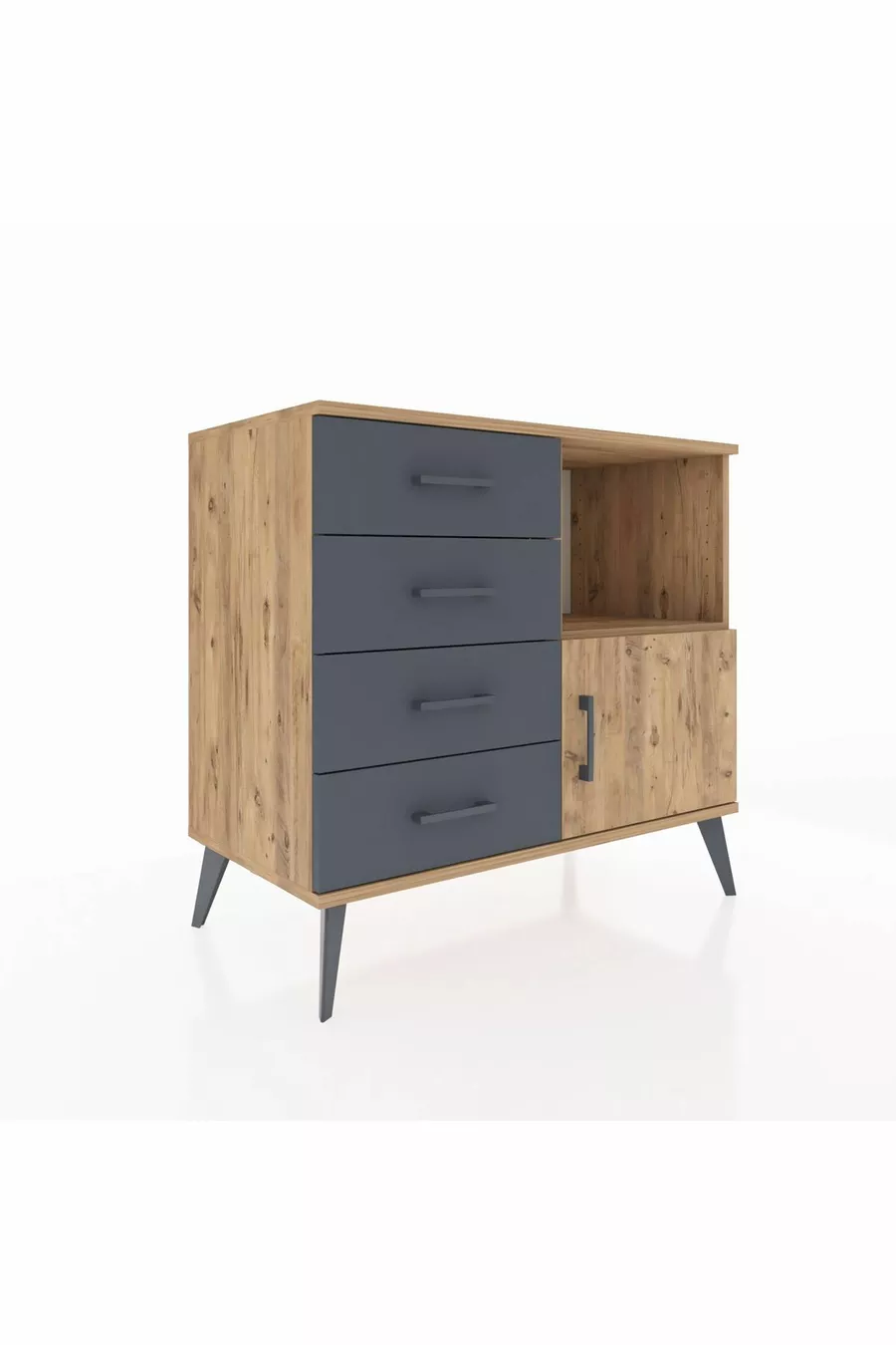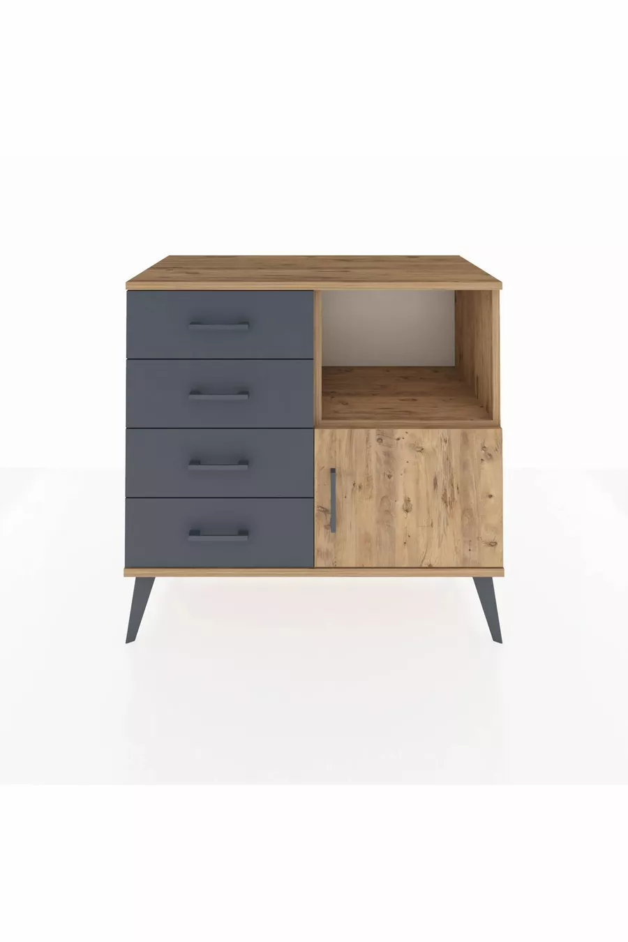 Комод Hyperion с одной полкой, 4 ящиками и одной дверцей, сосна-сосна/антрацит