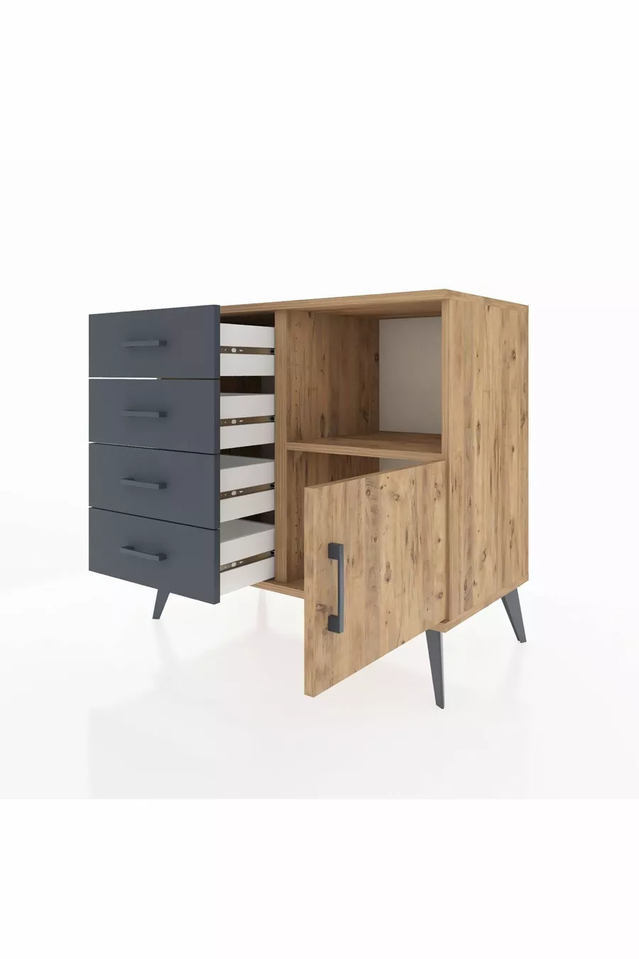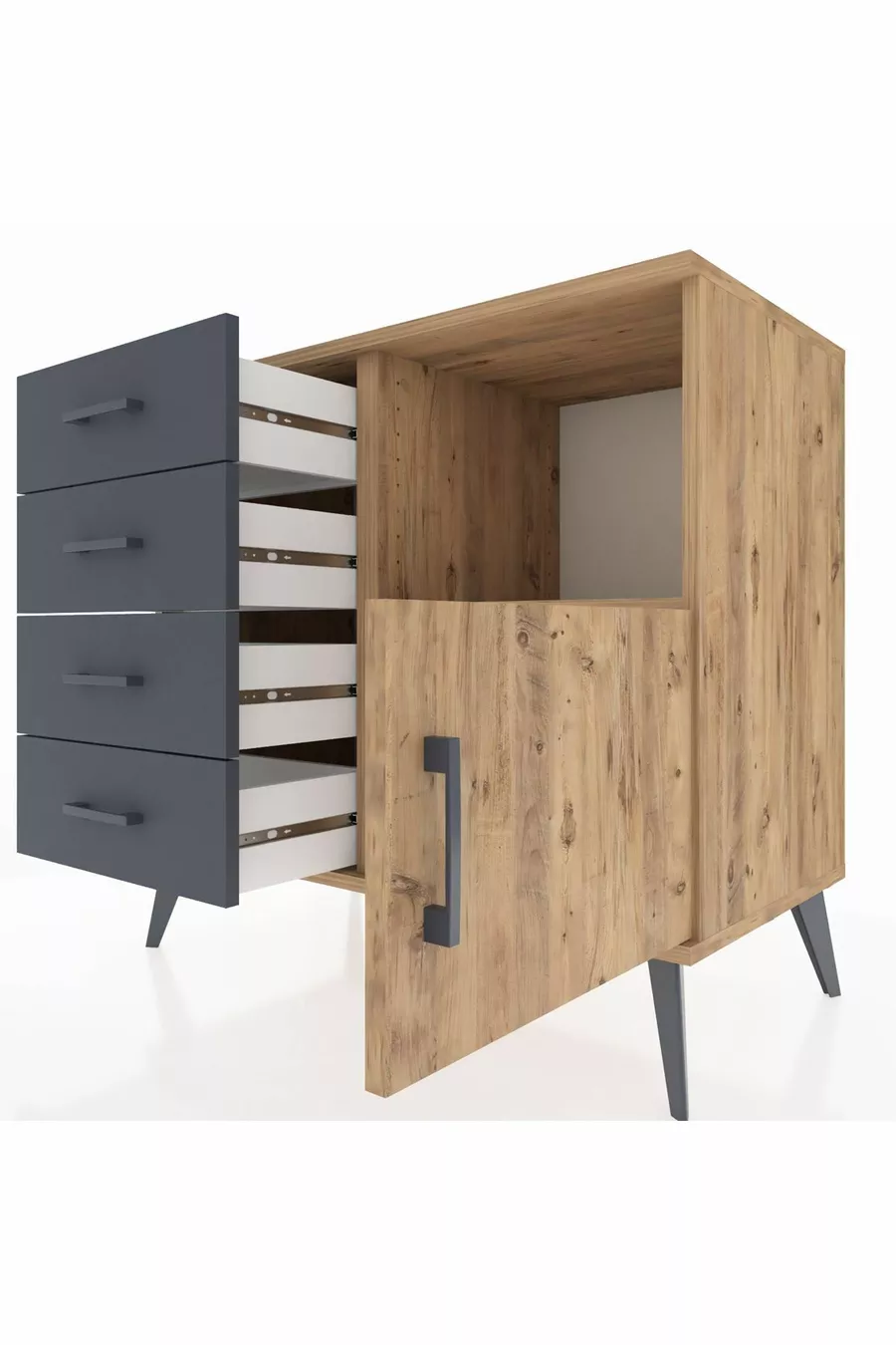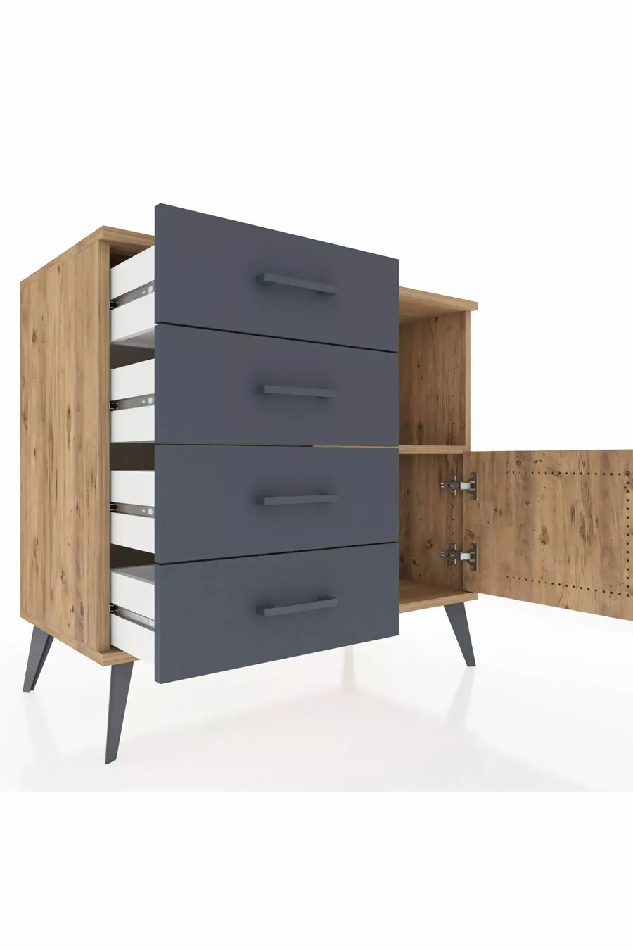 Комод Hyperion с одной полкой, 4 ящиками и одной дверцей, сосна-сосна/антрацит