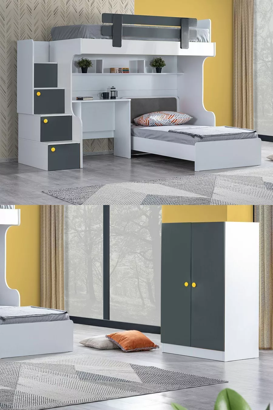 Кровать-чердак, кровать-чердак Metris, стол, шкаф