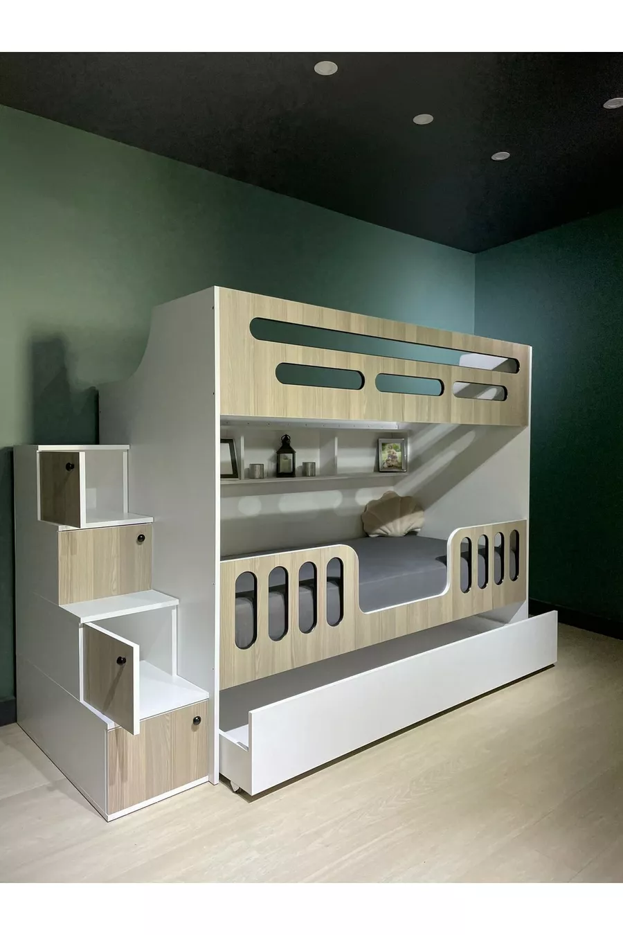 Кровать-чердак с ярусами для детской комнаты на 3 человека
