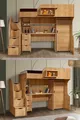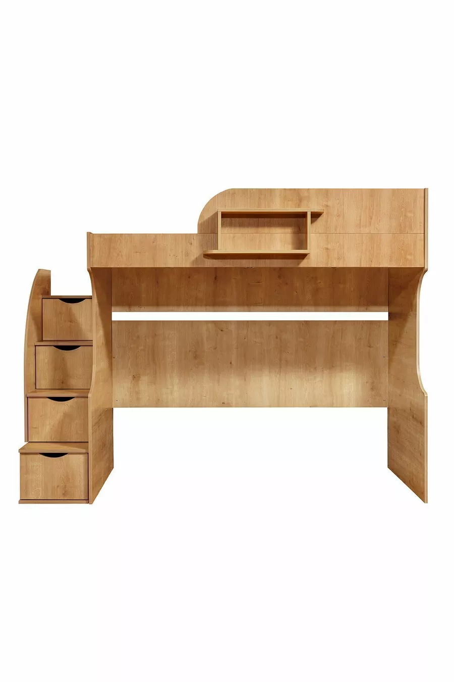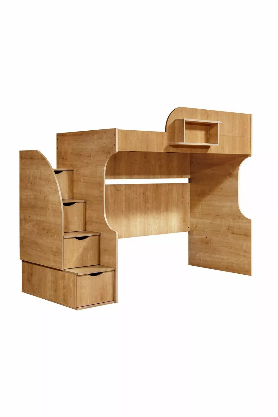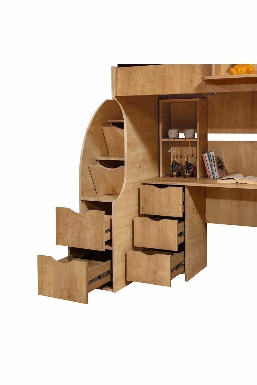 Кровать-чердак, шкаф и письменный стол Litera, светлый орех, 1 матрас Comfort