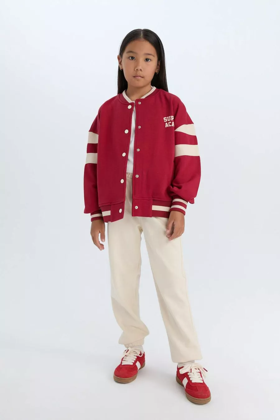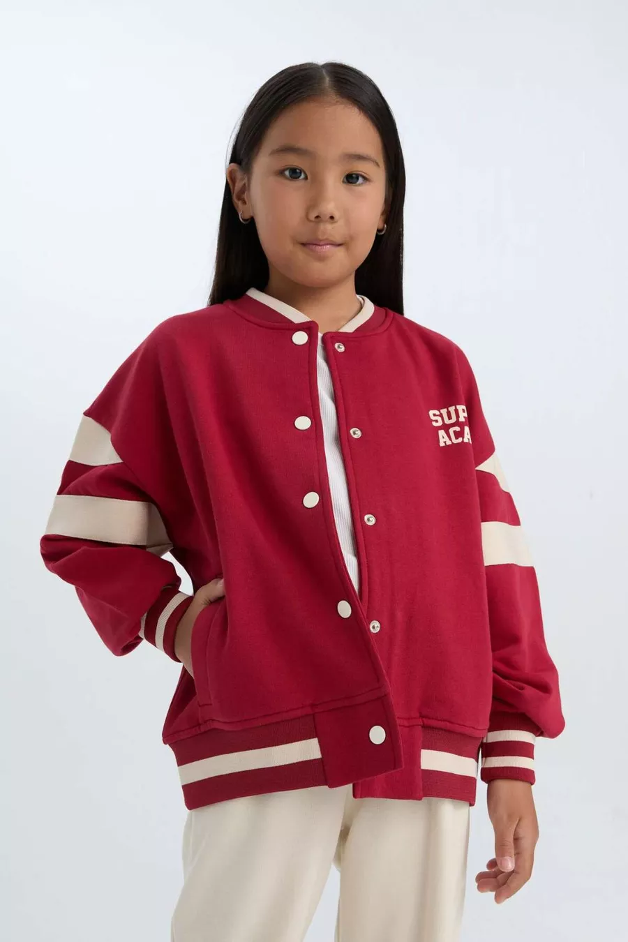 Куртка-бомбер для девочек с коллежским воротником, принтом, мягкой пушистой внутренней отделкой и кнопками WN