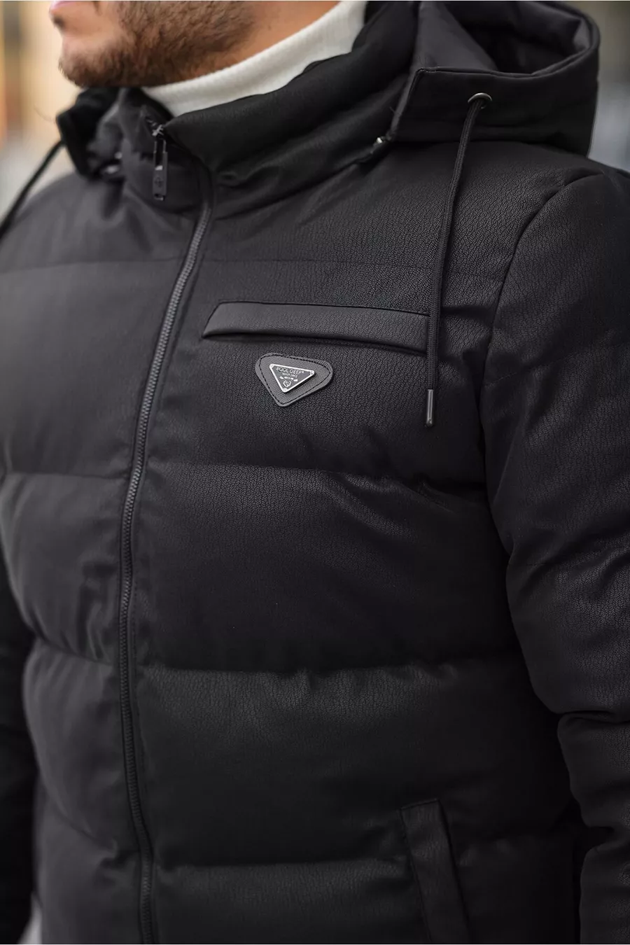 Куртка из кожаного карбона с гербом и капюшоном PLDP