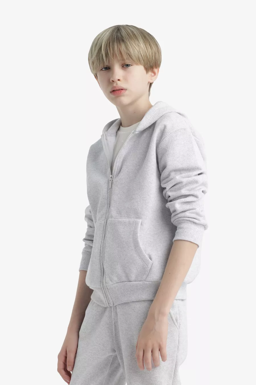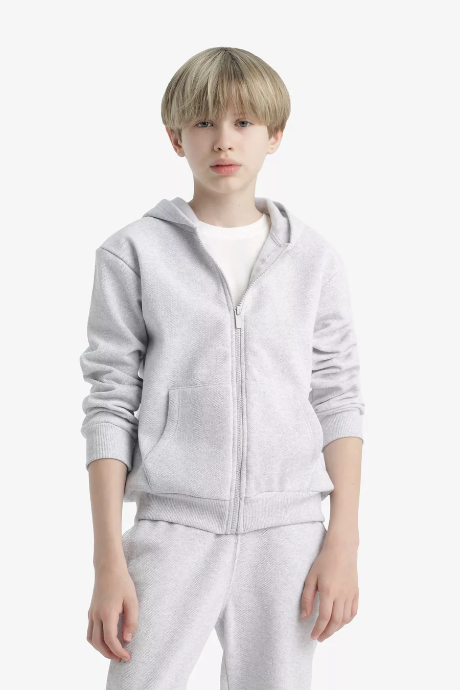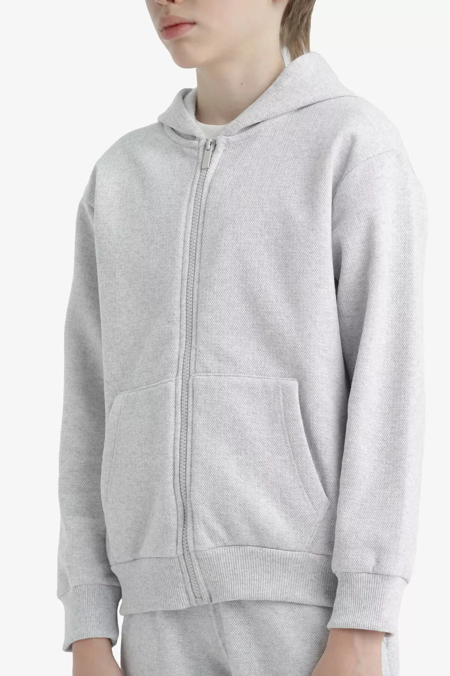Мальчиковый серый худи-флисовый школьный кардиган