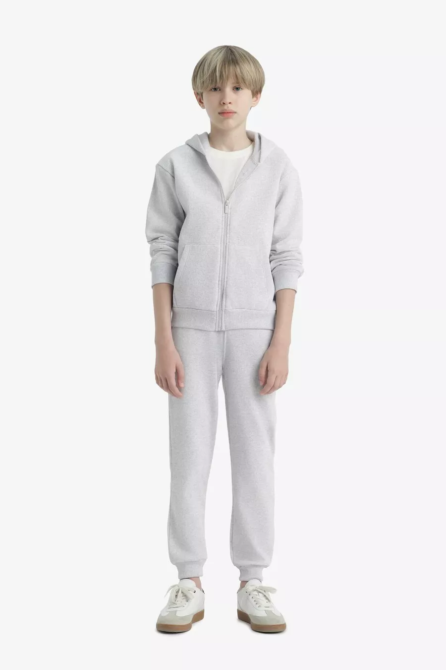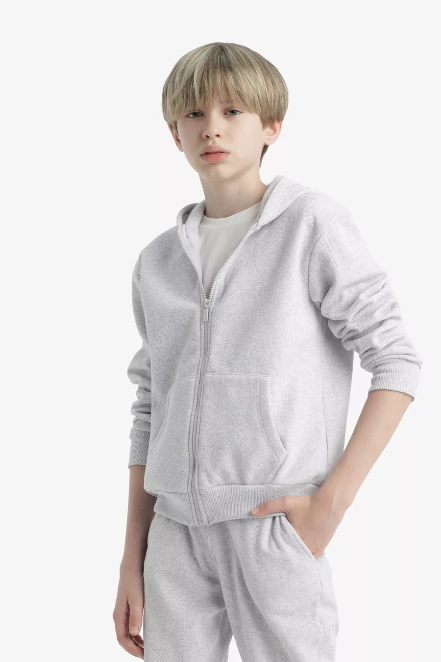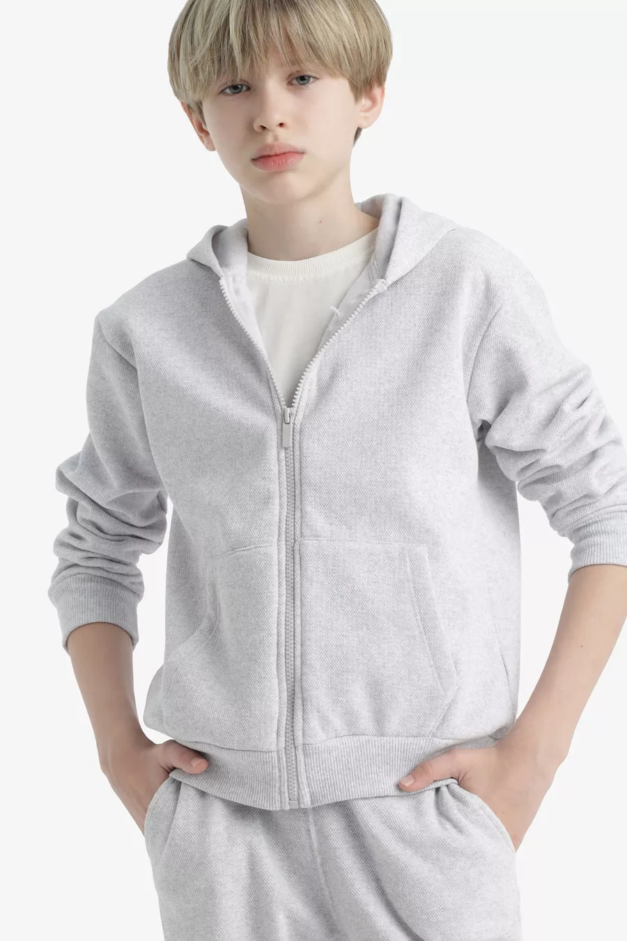 Мальчиковый серый худи-флисовый школьный кардиган