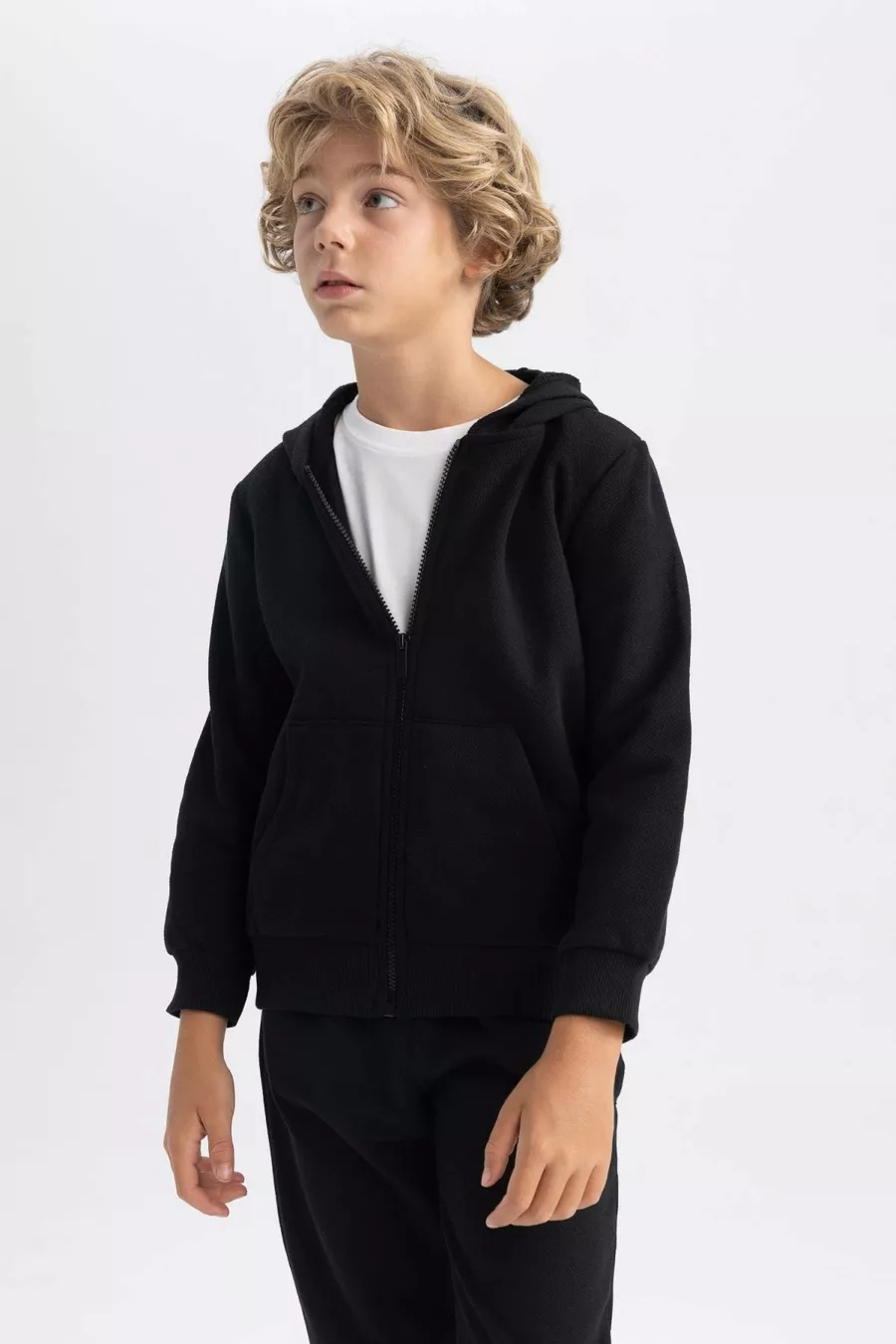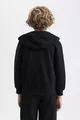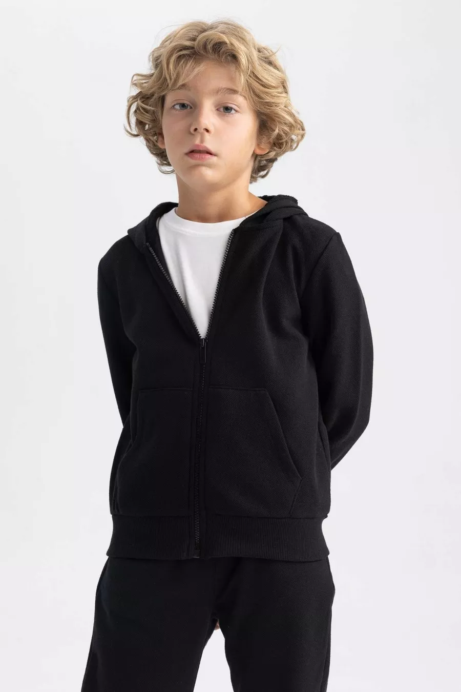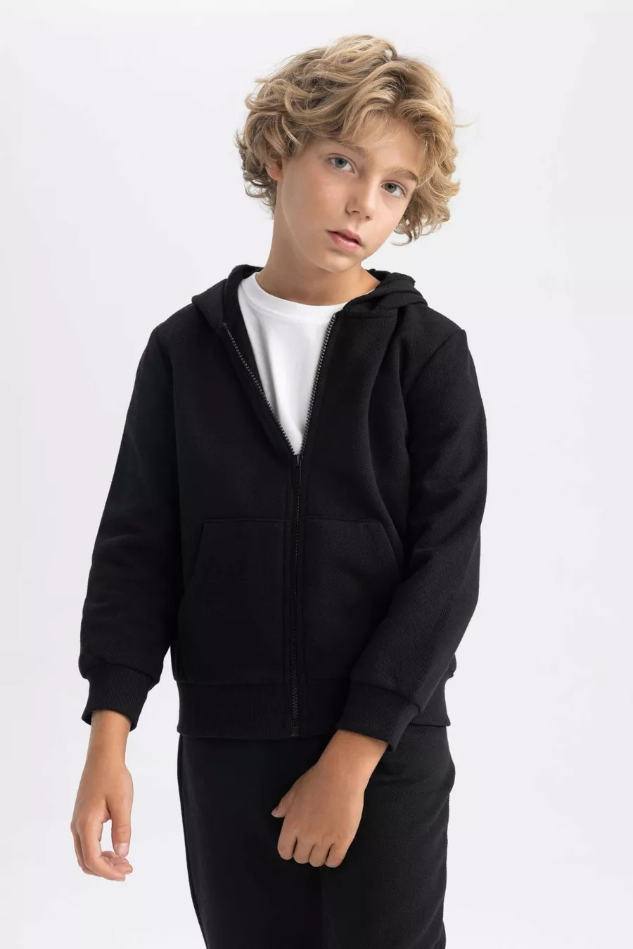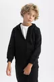 Мальчик Черный Хлопковый Кардиган с Капюшоном для Школы au