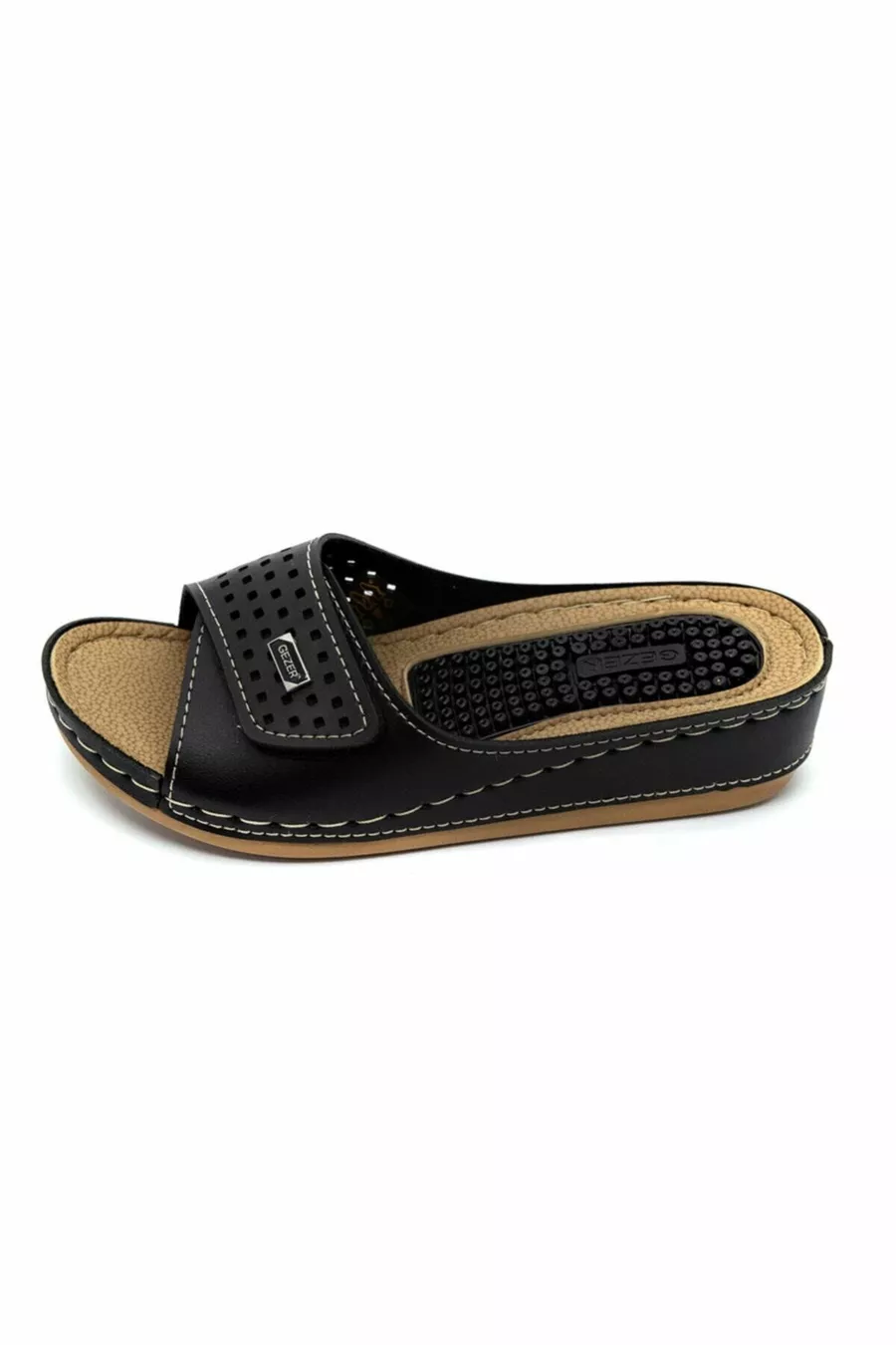 Массажные регулируемые сандалии для мам черного цвета с анатомической стелькой и застежкой-липучкой