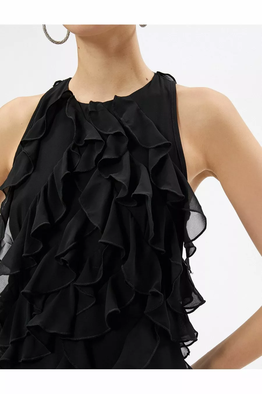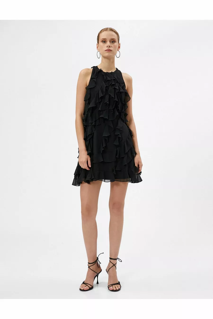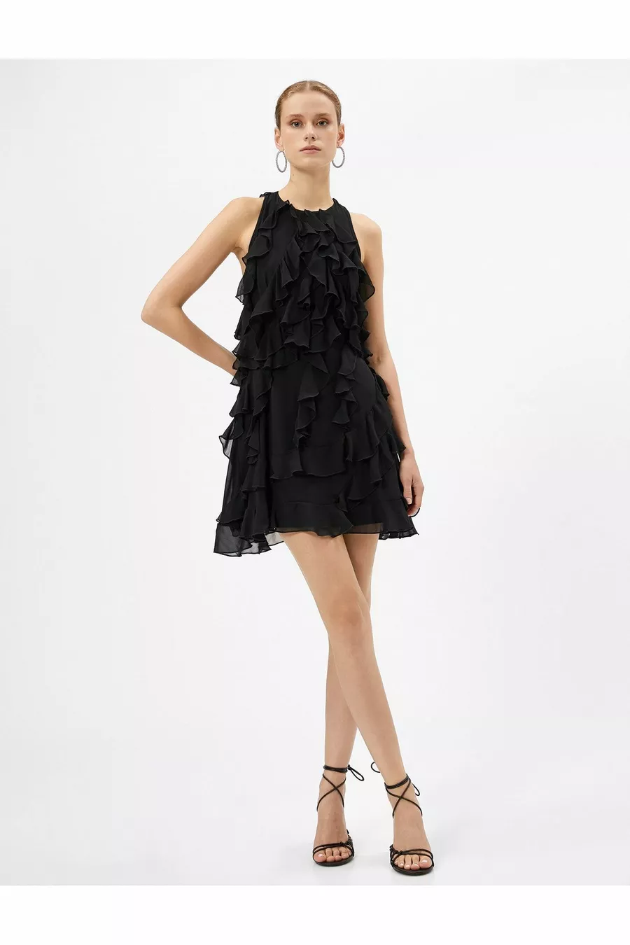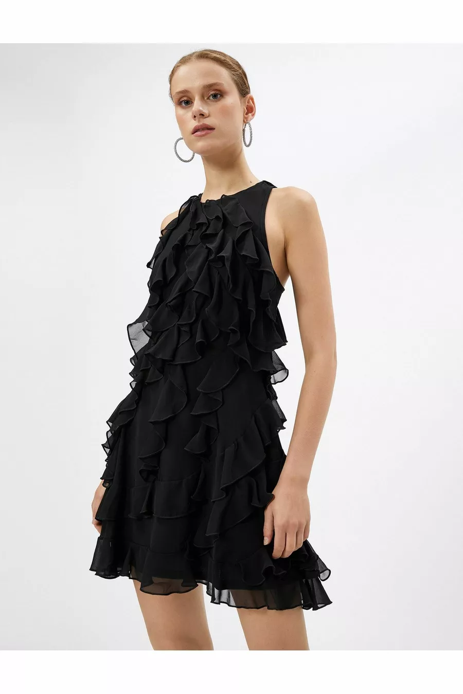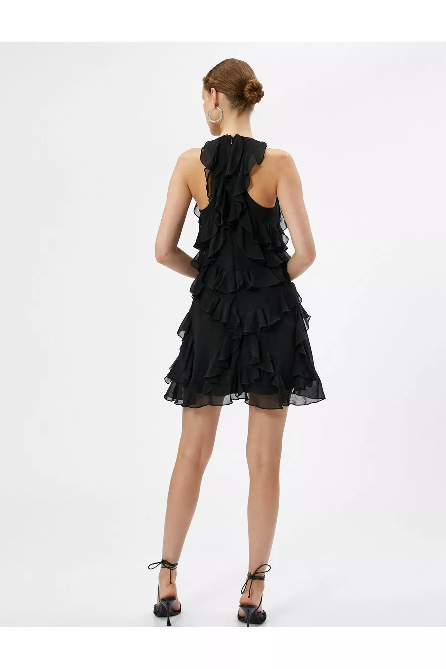 Мини вечернее платье из шифона с оборками и воротником на подкладке